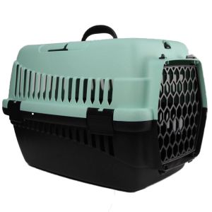 Переноска для тварин мятно-чорна пластик 49х32х35 см до 5 кг