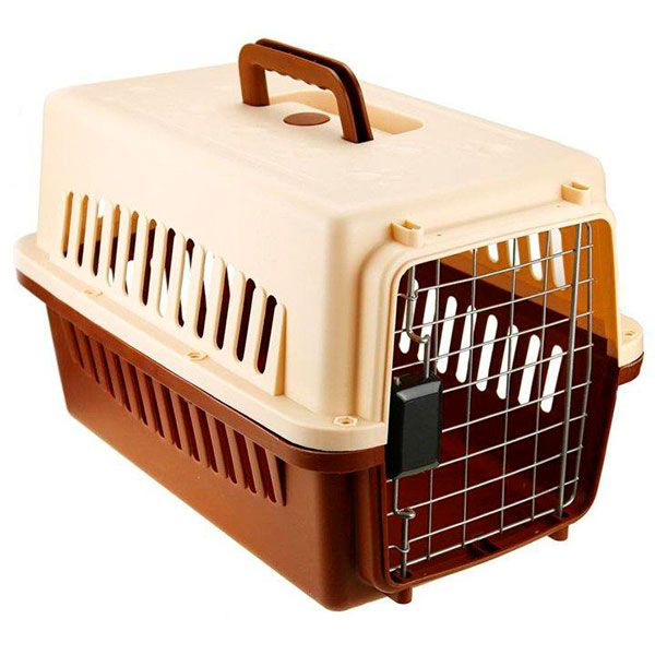 Переноска IATA з металевими дверима коричнево-бежева до 30 кг (67x47x46 см)