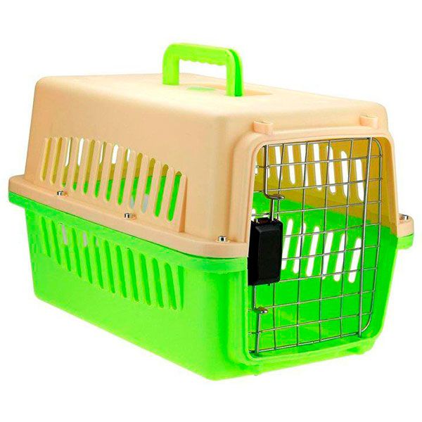 Переноска IATA з металевими дверима салатово-бежева до 10 кг (48x31x31 см) Блакитно-Бежева
