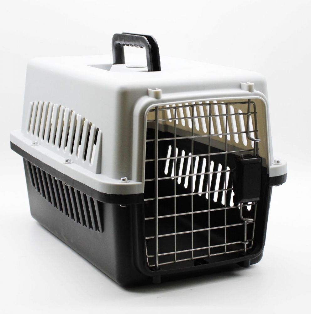 Переноска IATA з металевими дверима сіро-чорна до 20 кг (55x36x35 см)