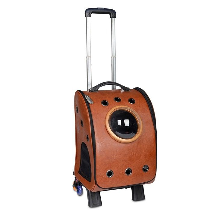 Рюкзак-переноска на колесах з ілюмінатором для перенесення тварин, шкіра, 33х44х27см Коричневий