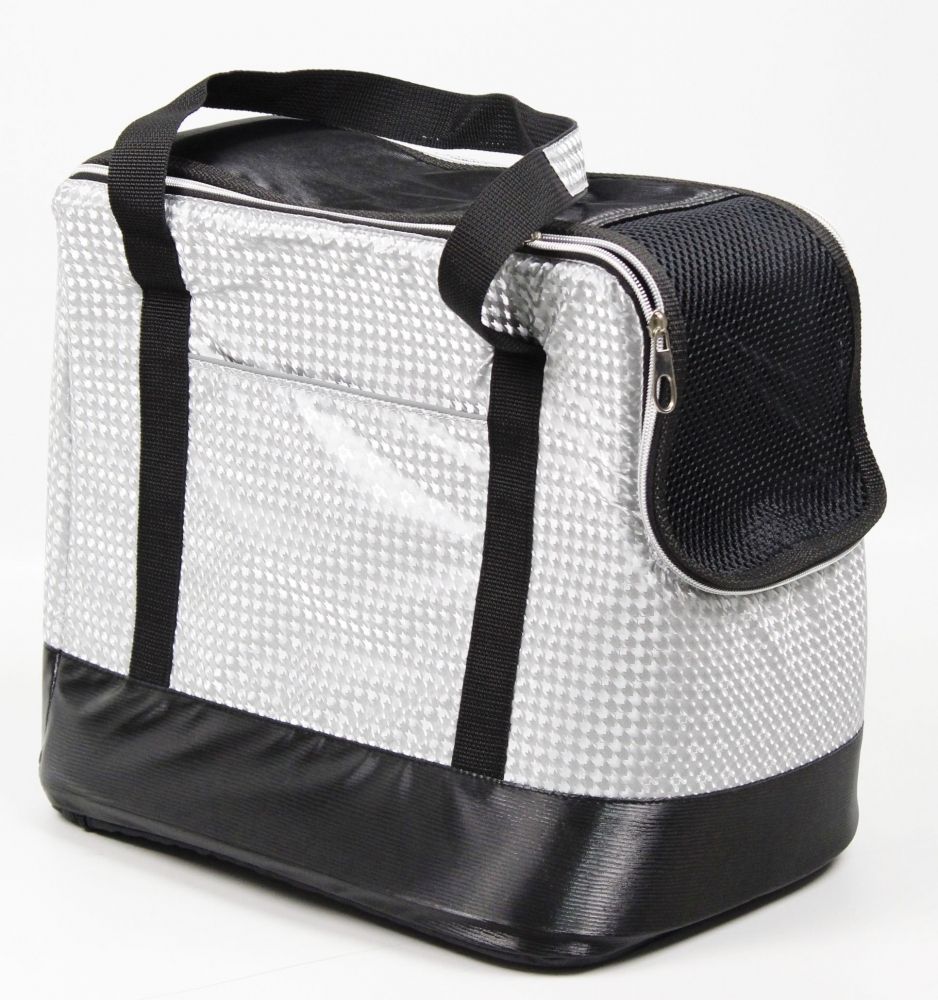 Сумка-перенесення Кармель виготовлена з декоративної плащової тканини, всередині оксфорд, наповнювач поролон. З переді є кишеня, сітка для циркуляції повітря збоку, Дно зміцнення, У середині є мяка подушечка, повідець з карабіном. Має дві довгі ручки для приємного носіння. Світловідбивна тканина.
