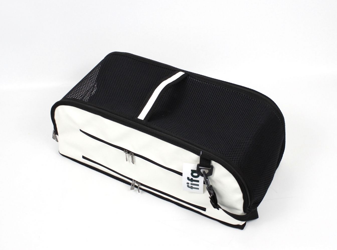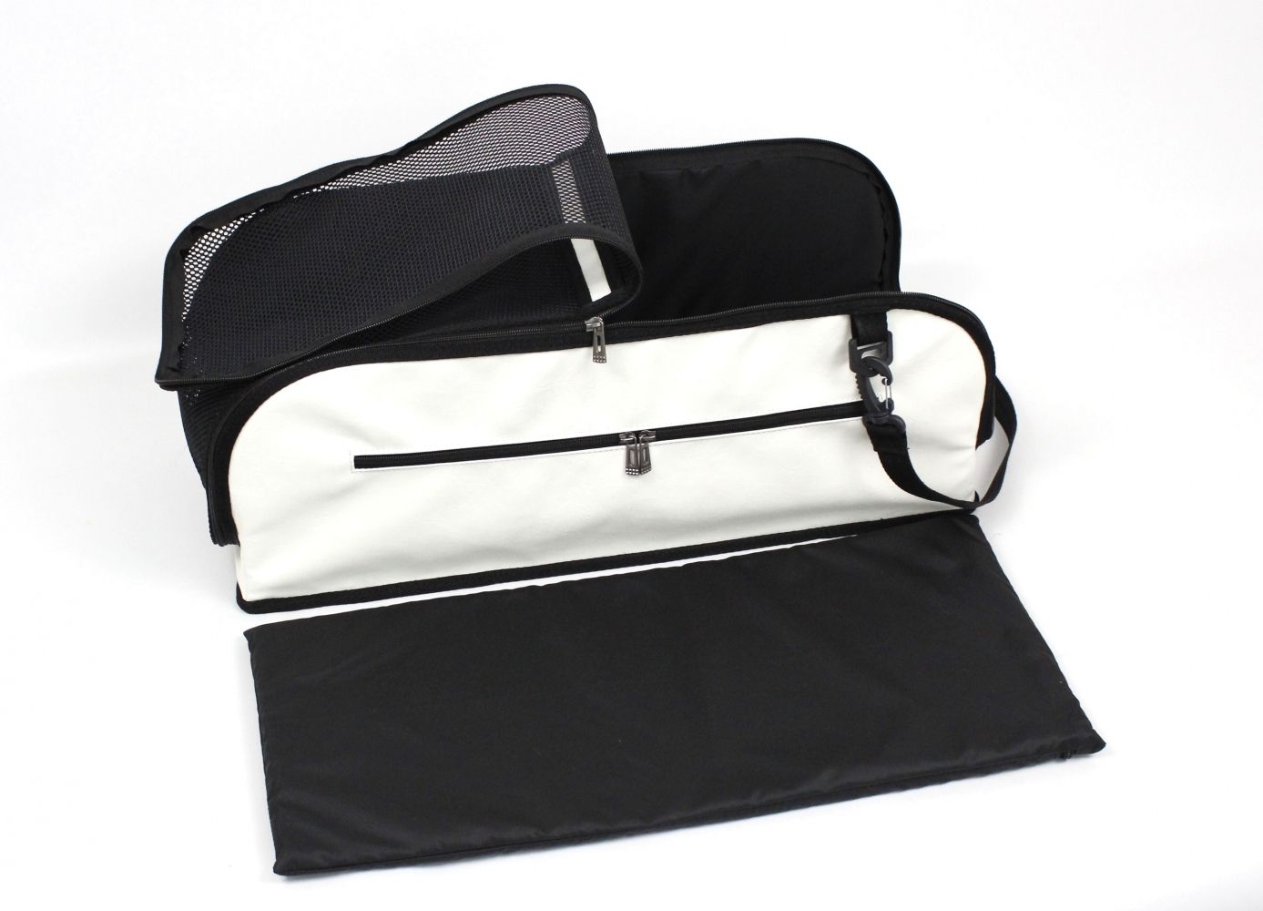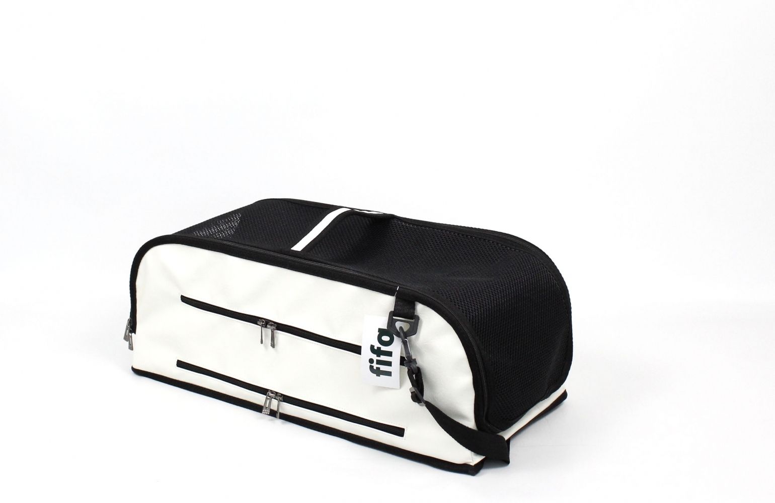 Це революційна переноска, яка переосмислює подорожі домашніх тварин у салоні, як авто, так і авіаАдаптується до різноманітних вимог, які встановлюють різні авіакомпанії, забезпечуючи при цьому максимальний комфорт для хвостатого. Система складання (до речі, очікує на патент), дозволяє подорожувати в максимально можливому просторі, поки літак знаходиться в повітрі, але при цьому дозволяє зберігати речі під авіакріслом під час зльоту та посадки. Ремені з обох сторін дозволяють закріпити сумку при подорожі у автомобілі. Прохідна кишеня дозволяє закріпити на телескопічній ручці ручної поклажі.