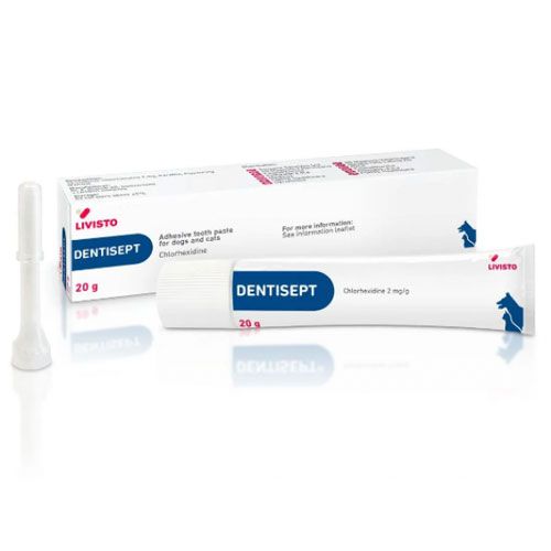 Опис зубної пасти для тварин Дентисепт (Dentisept)Є оригінальним продуктом швейцарсько-малайзійської компанії GraeubLivisto, відомої з 1920 року. Головна орієнтованість компанії на захист тварин залишилася незмінною ось вже століття. В даний час, володіючи великим досвідом у ветеринарному секторі, фармацевтична компанія розробляє і виробляє тільки високоякісні продукти для здоровя всіх представників фауни.Зубна паста для собак і котів Dentisept ефективна в першу чергу головним діючим компонентом - Хлоргексидином 0,2 , який є незмінним зовнішнім антисептиком і дезинфікуючим засобом уже понад 60 років для обробки операційних полів, інструментарію та рук хірургів, для профілактики ЗПСШ, для обробки в домашніх умовах ран, опіків, інфекцій, вугрів і стоматологічних проблем. Саме тому ,розробивши спеціальну адгезивних ,по простому - прилипає,, формулу зубного гелю, компанія дала можливість нашим вихованцям підвищити захист їхніх зубів та прилеглої порожнини.Тепер лікування і профілактика гінгівіту, стоматиту, пародонтиту та інших бек стало в рази легше і продуктивніше. Нанесена паста-гель на зуби за допомогою насадки ( але ми рекомендуємо це робити просто пальцем )) відразу ж прилипає, не злизує, а лише розподіляється мовою по поверхні всіх зубів і ясен, і протягом майже 24-х годин ваш улюбленець отримує антибактеріальне , бактерицидну, антисептичну дію і захист без позбавлення улюблених ігор і смачненького.Виробник попереджає про можливі алергічних реакціях. Тому хоч скарг все-таки не надходило ,але рекомендуємо пробувати на парочці передніх зубів, щоб легше було потім прибрати з них гель. Один мінус , з нашої точки зору, в цьому диво-антисептику : він не пахне мясом)) А ваніллю) Швидше це була турбота компанії і про люблячих господарів, так як вихованцям користь вони вже надали, а запахом ванілі заспокоїли распереживавшихся при обробці батьків)Використовуйте тільки для тварин.