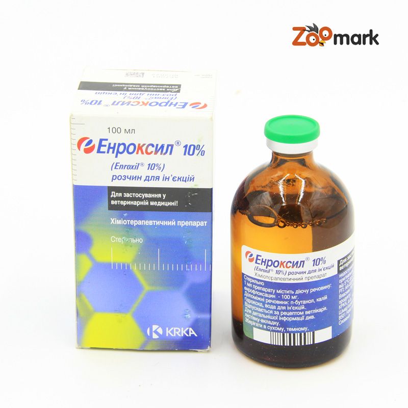 Загальні відомості Енроксил 10 (Enroxil 10) антибактеріальний лікарський препарат у формі перорального розчину, який містить в якості діючої речовини 100 мгмл енрофлоксацину та допоміжні компоненти бензиловий спирт, гідрооксид калію, гидроксилпропилметилцеллюлоза, вода для інєкцій.Зовнішній вигляд прозорий розчин жовтого кольору.Випускають препарат розфасованим у флакони з коричневого скла по 100 мл та пластмасові флакони по 1 л.Зберігають у сухому, темному, недоступному для дітей місці при температурі від +8 до +25С. Термін придатності 3 роки.Фармакологічні властивостіЕнрофлоксацин належить до групи фторхінолонів нового покоління, він перешкоджає синтезу ДНК в ядрах клітин мікроорганізмів і запобігає таким чином, розвиток паралельної резистентності. Препарат чинить бактерицидну дію проти грампозитивних (Staphylococcus spp., Streptococcus spp., Clostridium spp., Listeria monocytogenes, Corynebacterium spp. та ін) і грамнегативних мікроорганізмів (E. coli, Salmonella spp., Klebsiella spp., Proteus spp., Pasterella spp., Bordetella spp. та ін), а також діє проти мікоплазм і хламідій.Застосування препарату Лікування курей-бройлерів, племінних курей, ремонтного молодняку індиків, хворих мікоплазмозом, синдром зниження несучості, колі-інфекцією, пастереллезом, інфекційних пташиним ринітом (Haemophilus), сальмонельозом, стафілококом і кампілобактеріозом.Дозування Перорально з питною водою в дозі:домашня птиця (бройлери, племінні кури, ремонтний молодняк та індики) віком до 4 тижнів 50 мл препарату на 100 л питної води на добу,домашняя птица (бройлери, племенние кури, ремонтний молодняк и индюки) старше 4 недель 100 мл препарата на 100 л питьевой води в сутки (10 мг енрофлоксацина на 1 кг масси тела, т.е. 1 мл препарата на 10 кг масси тела). Курс лечения 3 суток, а при сальмонеллезе 5 суток. Ежедневно необходимо готовить свежий растворпоросята, телята (5 мг енрофлоксацина на 1 кг масси тела) 1 мл препарата на 20 кг масси тела ежедневно, в течение 3-5 дней.Во время лечения животним дают питьевую воду только с Энроксилом.Противопоказания На застосовувати одночасно з теофіліном і нестероїдними протизапальними засобами.При комбінації з тетрацикліном, макролідами і хлорамфеніколом (левоміцетин) можуть виникати антагоністичні явища.Не застосовувати одночасно з вакцинацією проти хвороби Марека.Період виведенняЗабій птиці на мясо дозволяється відповідно через 8 (кури-бройлери) і 10 (індики) діб після останнього застосування препарату. Залежно від висновку лікаря ветеринарної медицини, до зазначеного терміну, мясо згодовують непродуктивним тваринам або утилізують.Енроксил не рекомендується застосовувати для курей-несучок, яйця яких використовують у їжу люди.Попередження Персонал, який працює з препаратом, повинен дотримуватись основних правил гігієни та безпеки, що прийняті при роботі з ветеринарними препаратами.Виробник KRKA, СловеніяЯк купити Енроксил 10 (антибіотик)Оформити замовлення через корзинуОформити замовлення по контактним телефонам