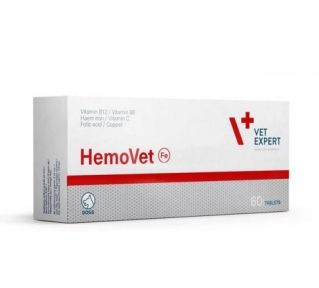 Vet Expert HemoVet (Вет Експерт ГемоВет) харчова добавка для собак із клінічними ознаками анемії. Джерело легко засвоюваного заліза. Харчова добавка містить необхідні речовини для утворення клітин крові. Призначається при лікуванні бабезіозу собак паразитарної інфекції, що вражає червоні кровяні тільця, регенеративної та аутоімунної гемолітичної анемії, а також відновлення після спленектомії. Препарат підтримує функцію кісткового мозку, є джерелом легкозасвоюваного двовалентного заліза, стимулює утворення червоних кровяних тілець та прискорює одужання. Сприяє утворенню гемоглобіну та міоглобіну, необхідних для транспортування кисню. Стимулює утворення еритроцитів.Показаннярегенеративні та аутоімунні гемолітичні анеміїнаявність паразитів (Babesia canis бабезіоз собак)порушення печінкових та ниркових функційаутоімунні процесинеправильне харчування: брак заліза в раціоні або нездатність його засвоюватиПеревагиМістить добре засвоюване гемове залізо.Містить інгредієнти, що беруть участь у кровотворенні.Залізо, що міститься в ГемоВет, підтримує правильне транспортування кисню в організмі.Містить у своєму складі всі необхідні мінерали та вітаміни, що сприяють виробництву червоних кровяних клітин: залізо гема, мідь, фолієва кислота, вітамін С, вітамін В6, вітамін В12.Для дорослих собак 1 капсула на кожні 10 кг ваги тіла на деньКапсула може бути введена безпосередньо в порожнину тварини або змішана зїжеюВажливоСлідкуйте, щоб у тварин завжди був доступ до чистої свіжої води.