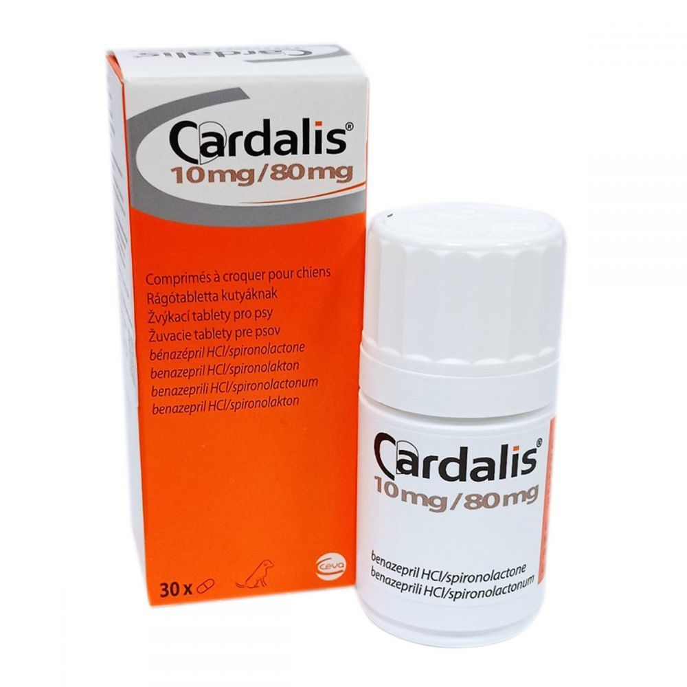 Ceva Cardalis (Кардалис) Таблетки для собак при серцевій недостатностіВетеринарний препарат для лікування застійної серцевої недостатності у собак.1 таблетка (вагою 151302604 мг) містить діючі речовини:2,5 мг беназеприлу, 20 мг спіронолактону (2,5 мг20 мг)5 мг беназеприлу, 40 мг спіронолактону (5 мг40 мг)10 мг беназеприлу, 80 мг спіронолактону (10 мг80 мг)Кардаліс випускають розфасованим в пластикові флакони по 30 таблеток, упаковані в картонні коробки.Переваги препарату для собак Ceva Cardalis (Кардаліс)Унікальна комбінація беназеприлу і спіронолактону для повноцінної блокади ренін-ангіотензин-альдостеронової системи (РААС)Більша ефективність порівняно із застосуванням лише одного беназеприлу, що зменшує прояв клінічних ознак беназеприлуБезпечний препарат (більше 8 років практичних застосувань) склад препарату схвалений Американським коледжем ветеринарної медицини (ACVIM)Жувальні таблетки (аромат яловичини, не викликає алергії) приємний смак, що забезпечує самостійне споживання препарату тваринамРекомендації по застосуваннюЯк частина стандартної терапії серцевої недостатності, як тільки зявляються клінічні ознаки (такі, як непереносимість фізичних вправ, кашель іабо задишка). Препарат застосовують перорально один раз на добу, змішуючи з невеликою кількістю корму безпосередньо перед основним годуванням.ВажливоЗастосовувати тільки в тих випадках, коли необхідно приймати одночасно обидві активнодіючі речовини у фіксованій дозі. Призначається тільки ветеринарним лікарем.Склад1 таблетка (вагою 151302604 мг) містить діючі речовини:2,5 мг беназеприлу, 20 мг спіронолактону (2,5 мг20 мг)5 мг беназеприлу, 40 мг спіронолактону (5 мг40 мг)10 мг беназеприлу, 80 мг спіронолактону (10 мг80 мг)В якості допоміжних речовин містить моногідрат лактози, мікрокристалічну целюлозу, повідон, смакову добавку яловичини, цукор прессованньй, кросповідон, стеарат магнію.ПротипоказанняНе застосовувати під час вагітності та лактації.Не застосовувати собакам, у яких виявлено гіпоадренокортицизм, гіперкаліємію або гіпонатріємію.Не застосовувати разом із нестероїдними протизапальними препаратами собакам з нирковою недостатністю.Не застосовувати у разі гіперчутливості до інгібіторів ангіотензинперетворюючого ферменту (інгібіторів АПФ) або до будь-якої з допоміжних речовин препарату.Не застосовувати у випадках порушення серцевого викиду через аортальний або легеневий стеноз.ЗберіганняЗберігати окремо від продуктів харчування та кормів, у недоступному для дітей місці за температури від 5 до 25С.Термін придатності2 роки.Після відкриття, препарат слід використати протягом 6 місяців.Рекомендовано відпуск препарату за рецептом лікаря ветеринарної медицини.