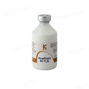 Фармакологічні свойстваПенициллин володіє високою антибіотичною активністю головним чином щодо грампозитивних мікроорганізмів (стрептококів, пневмококів, стафілококів, дифтерійних і сибіркових паличок, клостридій), грамнегативних коків, спірохет і деяких патогенних грибів. Резистентними до дії пеніциліну є грамнегативні мікроорганізми, рикетсії, віруси, найпростіші і майже всі гриби. До дії пеніциліну стійкі штами стафілокока, кишкової палички, синьогнійної палички та інших мікроорганізмів, що утворюють фермент пеніциліназу. Пеніцилін у формі прокаїну бензилпеніциліну створює спочатку високу концентрацію пеніциліну в тканинах. Дигідрострептоміцин сульфат пригнічує ріст і розвиток сальмонел, пастерелл, ешерихій, кокової мікрофлори. Не діє на анаеробні бактерії, гриби, віруси та найпростіші. Комбінація діючих речовин в препараті значно посилює їх антибактеріальну дію.Дози і спосіб примененияКОМБИ-КЕЛ 40 застосовують внутрішньомязово або підшкірно для лікування інфекцій, викликаних чутливими до пеніциліну та (або) дигідрострептоміцин сульфату мікроорганізмами захворювання органів дихання (геморагічна септицемія, пастерельоз, бронхопневмонія, риніт, ларингіт), інфекції сечостатевої системи (пієлонефрит, нефрит, ендометрит), інфекцій шкіри і ран, перитоніту, маститів, менінгіт (стрептококовий), поліартритів, абсцесів, отитів, пики свиней правця, сибірської виразки, клостридиозов, некробактеріозу, актином икоза, пупкового сепсису, септицемії, актинобактериоза, післяопераційної профілактики, синдромі метрит-мастит-агалактія (ММА) у свиней, коней, великої рогатої худоби, собак, кішок у наступних дозах: Вид тварин і разова доза:Велика рогата худоба, коні 1 мл препарату на 10-20 кг маси тіла тварини один раз в день. Собаки, кішки 1 мл препарату на 10-20 кг маси тіла тварини один раз в день. Свині, вівці, кози 1 мл препарату на 10-20 кг маси тіла тварини один раз в день. Побічні действияПри введенні препарату іноді виявляються швидко розвиваються алергічні реакції. Лікування алергічних реакцій: глюкокортикостероїди іллі антигістаміни. Можливі нервові явища, нейромязова блокада, блювання, гарячковий стан, аборти у свиней. Тривале застосування препарат може призводити до глухоти, вестібулотоксіческім і нефротоксичну симптомів. ПротивопоказанияНе допускається застосування препарату при індивідуальній підвищеній чутливості до одного з компонентів. Не застосовувати лактуючим тваринам, якщо молоко використовується для харчових цілей. Не применять внутривенно. Не применять животним с почечной недостаточностью. Особие указанияУбой животних на мясо не ранее, чем через 30 суток после последнего введения препарата. Мясо животних, винужденно убитих до истечения указанного срока, может бить использовано на корм плотоядним или для производства мясокостной муки. Молоко запрещается использовать для пищевих целей в течение 4 дней после последнего введения препарата. До етого срока молоко используют в корм животним. Необходимо встряхивать флакон перед применением и использовать только сухой шприц. Не використовувати одночасно з іншими медикаментами в одному шприці. Умови храненияХранят з пересторогою (список Б) у захищеному від світла місці при температурі від 2 до 8С.Термін годности3 роки з дня виготовлення.Як купити Комбікел 40 ЛА 1