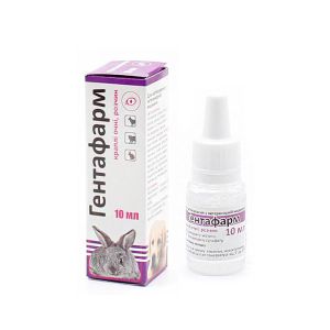 Опис крапель для очей ГентафармГентафармкапли - препарат з місцевим застосуванням для лікування захворювань очей тварин і птахів. Діючою речовиною являетсяаминогликозиднийантибиотикгентамицин, активний проти багатьох грамнегативних бактерій і аеробних грампозитивних коків. Стійкість мікроорганізмів кгентамицинуразвивается досить повільно.Краплі для очей являють собою прозору рідину. У миллилитреГентафармасодержится 4 мг сульфатагентамицинаи допоміжні речовини. Препарат випускається компаниейФарматон (Україна) у флаконах із скла з гумовою пробкою. Разом з піпеткою-крапельницею та інструкцією упакований в картонну коробку.Препарат призначають кішкам, собакам, декоративним тварин, кролів і птиці для лечениякератитов, гнійних і катаральнихконъюктивитов, виразок рогівки та інфікованих ран у разі, якщо офтальмологічні захворювання викликані бактеріями з чутливістю кгентамицину.Інструкція по применениюСредство закопують хворим тваринам 2 або 3 рази в день по 1-3 краплі в кожне око. Залежно від причини запалення і стану хвороби курс лікування може становити від 2 до 5 днів. Після закапування можливе невелике почервоніння очей, печіння і сльозотеча, яке швидко проходить.Протипоказанням до застосування є індивідуальна непереносимостьгентамицина. В цьому випадку слід використовувати інші препарати для лікування.Не можна использоватьгентамицин, змішуючи в крапельниці з антибіотиками пеніцилінової групи, еритроміцином, сульфаніламідами, цефалоспоринами, гепарином і вітамінами групи В. У разі необґрунтовано тривалого застосування можливий розвиток мікроорганізмів з стійкістю кгентамицинуи виникнення грибкової інфекції.Допускається препарат Гентафармкупить і зберігати до двох років при кімнатній температурі в темному місці, після розтину можна зберігати не більше 10 днів.
