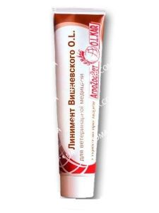 Спосіб застосування та дозиЗастосовують зовнішньо: наносять 2-3 рази на добу тонким шаром на уражені ділянки шкіри або накладають повязку у 5-6 шарів марлі з препаратом, повязку фіксують. Курс лікування становить 10-12 діб.Побічні дії-алергічні реакції: висип, свербіж шкіриПротипоказання- підвищена чутливість до компонентів препаратуЛікарські взаємодіїНе встановленіОсобливі вказівкиСлід з обережністю застосовувати препарат особам з підвищеною чутливістю до фенолу і його похідних.Лінімент призначений тільки для зовнішнього застосування.Не допускати потрапляння препарату на слизові оболонки, особливо в очіУ разі потрапляння промити великою кількістю води.Руки після нанесення лініменту необхідно ретельно вимити для запобігання попадання залишків препарату в очі, ніс, рот.Дитячий вікДані щодо безпеки та ефективності застосування відсутні.Вагітність і період лактаціїМожливе застосування при необхідності за призначенням лікаряОсобенности влияния лекарственного средства на способность управлять автотранспортом или потенциально опасними механизмами Нет даннихПередозировкаСимптоми: возможни проявление местной аллергической реакции (висипания, зуд)Лечение: симптоматическая терапияФорма випуска и упаковкаПо 25 г в банках укупоренних кришкой типа или по 40 г в тубе с навинчиваемим бушоном.Банки вместе с соответствующим количеством инструкции по медицинскому применению на государственном и русском язиках помещают в групповую упаковку.Тубу разом з інструкцією для медичного застосування на державному та російською мовами поміщають у пачку із картону.Умови зберіганняЗберігати при температурі від 8 С до 15 С.Зберігати в недоступному для дітей місціТермін зберігання5 роківЯк купити Лінімент за Вишневським (зовнішньо, антисептик)Оформити замовлення через корзинуОформити замовлення по контактним телефонам