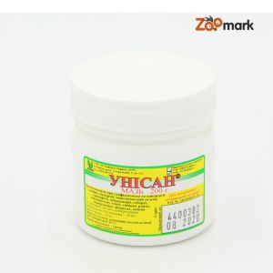 Опис мазі УнисанМазь Унисан - це лікарський засіб, испоьзуемое проти захворювань, викликаних бактеріями або грибками. Вона може застосовуватися для тварин всіх видів. Основною діючою речовиною мазі є біглюконат хлоргексидину. Препарат впливає на всі види грам-негативних і грам-позитивних бактерій, на дерматофіти, ліпофільні віруси, хламідій і на деяких інших збудників. Крім цього, мазь Унисан, купити яку можна, оформивши замовлення в нашому інтернет-магазині, має протизапальну і легку анестезуючу дію. Застосовувати лікарський засіб при наступних захворюваннях: піодермії різних типів, стафілококкоз шкіри, импетигинозних екземах, себореї, кандидозах шкіри, опіках, зовнішньому отиті, абсцесах і при лікуванні загноившихся ран.Інструкція по застосуваннюІнструкція з нанесення мазі Унисан: препарат наноситься на хворі ділянки невеликим шаром 2 рази на добу. Процедуру виконують кожен день протягом хвороби і деякий час після одужання. При бактеріальних захворюваннях нанесення мазі після повного одужання продовжують протягом 3-5 днів, а при захворюваннях, викликаних грибками - не менше 10 днів. При лікуванні абсцесів або гнійних ран мазь наносять на ватно-марлеві повязки, які накладають на хворі поверхні. Перевязки повторюють щодня до повного одужання. Якщо нагноєння дуже глибокі, то мазь можна вводити в рану шприцом без голки. Перед цим ємність з маззю підігрівають в теплій воді для кращого її розрідження.При застосуванні лікарського препарату Унисан побічних дій або передозувань не спостерігалося. При цьому слід остерігатися попадання мазі в очі, а також забороняється застосовувати одночасно з ліками на основі йоду - це може викликати розвиток дерматитів. Зберігають мазь протягом 2 років при температурі до + 24 С.