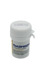 Фармакологічні властивостіФармакодинаміка. метилпреднізолон синтетичний глюкокортикоїд. КС проникають через клітинні мембрани та утворюють комплекси зі специфічними цитоплазматичними рецепторами, які проникають у клітинне ядро, звязуються з ДНК (хроматином), стимулюють транскрипцію мРНК та подальший синтез різних ферментів, чим і пояснюється ефект при системному. застосування ГКС. Метилпреднізолон - аналог преднізолону. За активністю близький до преднізолону, але практично не має мінералокортикоїдної активності, що забезпечує кращу переносимість. та центральну нервову систему. Вплив на запальний процес та імунну відповідь. Метилпреднізолон має протизапальну, десенсибілізуючу та протиалергічну дію. Має протишокові, антитоксичні та імунодепресивні властивості. -лімфоцитів. Подібно до інших глюкокортикоїдів, метилпреднізолон гальмує вивільнення цитокінів (інтерлейкінів-1 і 2, -інтерферону) з лімфоцитів та макрофагів, пригнічує вивільнення еозинофілами медіаторів запалення, знижує метаболізм клітин в осередку запалення зменшення вазодилатації стабілізація лізосомальних мембран інгібування фагоцитозу зменшення вироблення простагландинів та споріднених сполук. Доза 4 мг метилпреднізолону має таку ж глюкокортикостероїдну дію (протизапальну), як і 20 мг гідрокортизону. Метилпреднізолон має лише мінімальну мінералокортикоїдну дію (200 мг метилпреднізолону еквівалентні 1 мг дезоксикортикостерону). Вплив на вуглеводний та білковий обмін. ГКС виявляють катаболічну дію щодо білків: затримують синтез та прискорюють розпад білків. . Засвоєння глюкози в периферичних тканинах знижується, що може призвести до гіперглікемії та глюкозурії, особливо у хворих, схильних до цукрового діабету. Вплив на жировий обмін. ГКС мають ліполітичну активність, яка в першу чергу проявляється на тканинах кінцівок, та ліпогенетичну активність, найбільш виражену в області грудної клітини, шиї та голови, що призводить до перерозподілу жирових відкладень. У відносно високих дозах гальмує розвиток лімфоїдної та сполучної тканин, у тому числі ретикулоендотелію зменшує кількість опасистих клітин, які є місцем утворення гіалуронової кислоти пригнічує активність гіалуронідази та сприяє зниженню проникності капілярів. Максимальна фармакологічна активність глюкокортикоїдів проявляється тоді, коли концентрація в плазмі крові вже нижча за Cmax, тому вважається, що переважна більшість терапевтичних ефектів препаратів обумовлена в першу чергу модифікацією активності ферментів, а не прямою дією препарату. Фармакокінетика. Фармакокінетика метилпреднізолону є лінійною незалежно від способу застосування. Всмоктування. Абсолютна біодоступність метилпреднізолону у здорових людей після перорального прийому загалом висока (82-89). здорових людей. Рівень всмоктування в дистальному відділі становить близько 50 рівня всмоктування в проксимальному відділі. Розподіл.Метилпреднізолон широко розподіляється у тканинах, проникає через гематоенцефалічний барєр та виділяється у грудне молоко. Утворює слабкі дисоціуючі звязки з альбуміном та транскортином. Звязування метилпреднізолону з білками плазми становить приблизно 77. Метилпреднізолон метаболізується переважно у печінці до неактивних метаболітів. Основні метаболіти - 20--гідроксиметилпреднізо