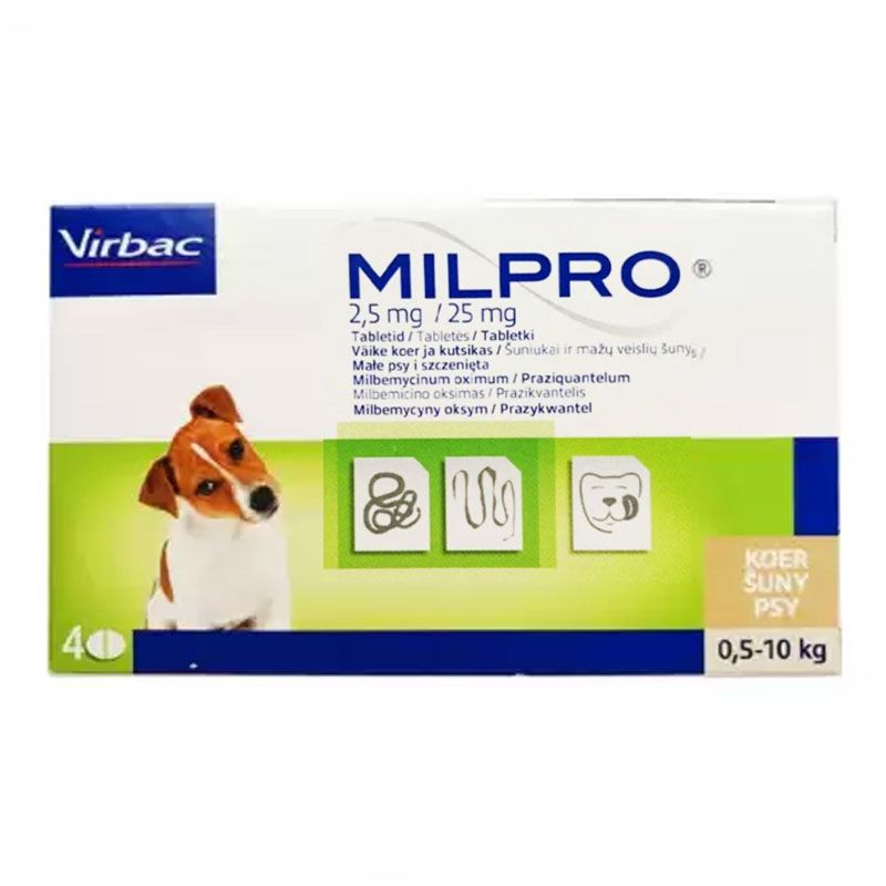 Мілпро для собак і цуценят мільбеміцин, 4 таблетки Вірбак від 0,5 кг 2,5 мг25мг