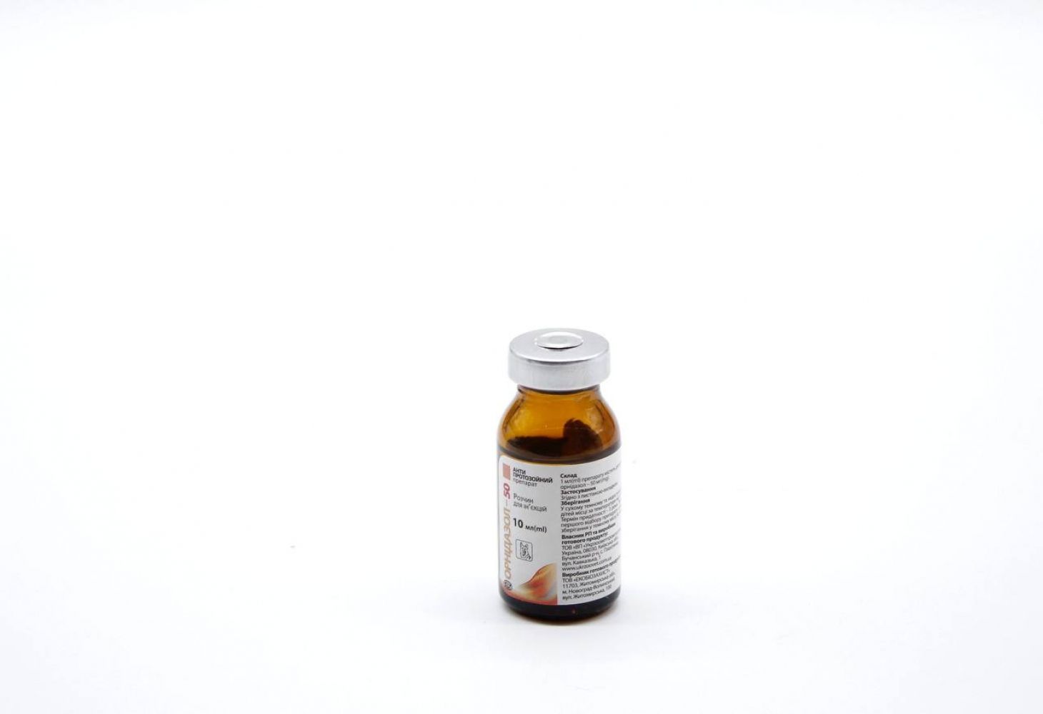 Орнідазол-50, 10 млСклад100 мл препарату містить діючу речовину: орнідазол - 5 г.Фармакологічна діяОрнідазол - протипротозойну та антибактеріальний засіб. Активний відносно Trichomonas vaginalis, Gardnerella vaginalis, Giardia intestinalis, Entamoeba histolytica облігатних анаеробних мікроорганізмів: Bacteroides spp. (В т. ч. Bacteroides fragilis, Bacteroides distasonis, Bacteroides ovatus, Bacteroides thetaiotaomicron, Bacteroides vulgatus), Fusobacterium spp., Veillonela spp., Prevotella spp. (Prevotella bivia, Prevotella buccae, Prevotella disiens) грампозитивних мікроорганізмів: Eubacterium spp., Clostridium spp. До препарату не чутливі аеробні мікроорганізми.За механізмом дії - ДНК-тропний препарат з вибірковою активністю щодо мікроорганізмів, які мають ферментні системи, здатні відновлювати нітрогрупу і каталізувати взаємодію білків групи феридоксинів з нітросполуками. Після проникнення препарату в мікробну клітину механізм його дії обумовлений відновленням нітрогрупи під впливом нітроредуктаз мікроорганізму та активністю вже відновленого нітроімідазолу. Продукти відновлення утворюють комплекси з ДНК мікробної клітини, викликаючи її деградацію, порушують процеси реплікації і транскрипції ДНК. Крім того, продукти метаболізму препарату мають цитотоксичними властивостями і порушують процеси клітинного дихання.ЗастосуванняЛікування собак, хворих амебиозом, дизентерію, трихомониозом, трихомонадним уровагинитом, лямбліоз, балантидиозом, при шкірних інфекціях, сепсисі, менінгіті, пневмонії, ендокардиті, перитоніті, абсцесі печінки, ендометриті, захворюваннях кісток і суглобів, абсцесі легенів, викликані найпростішими і мікроорганізмами роду Bacteroides, чутливими до орнидазолу. Для профілактики розвитку анаеробних інфекцій після оперативних втручань, у тому числі після операцій на органах черевної порожнини, околоректальной області гінекологічних операцій.ДозуванняПідшкірно або внутрішньомязово в дозі 1 мл на 10 кг маси тіла тварини (5 мг орнідазолу на 1 кг) один раз на добу протягом 3-5 діб.ПротипоказанняПідвищена чутливість до орнидазолу або інших похідних нітроімідазолу. Не застосовувати під час вагітності та лактації.ПопередженняСлід дотримуватися обережності при застосуванні препарату у тварин з захворюваннями ЦНС і захворюваннями нирок.Можлива форма випускуФлакони, закриті гумовим корком під алюмінієву обкатку по 10, 50 і 100 млЗберіганняСухе, темне, недоступне для дітей місце при температурі від 8 до 25 С. Список Б.Термін придатності3 роки.