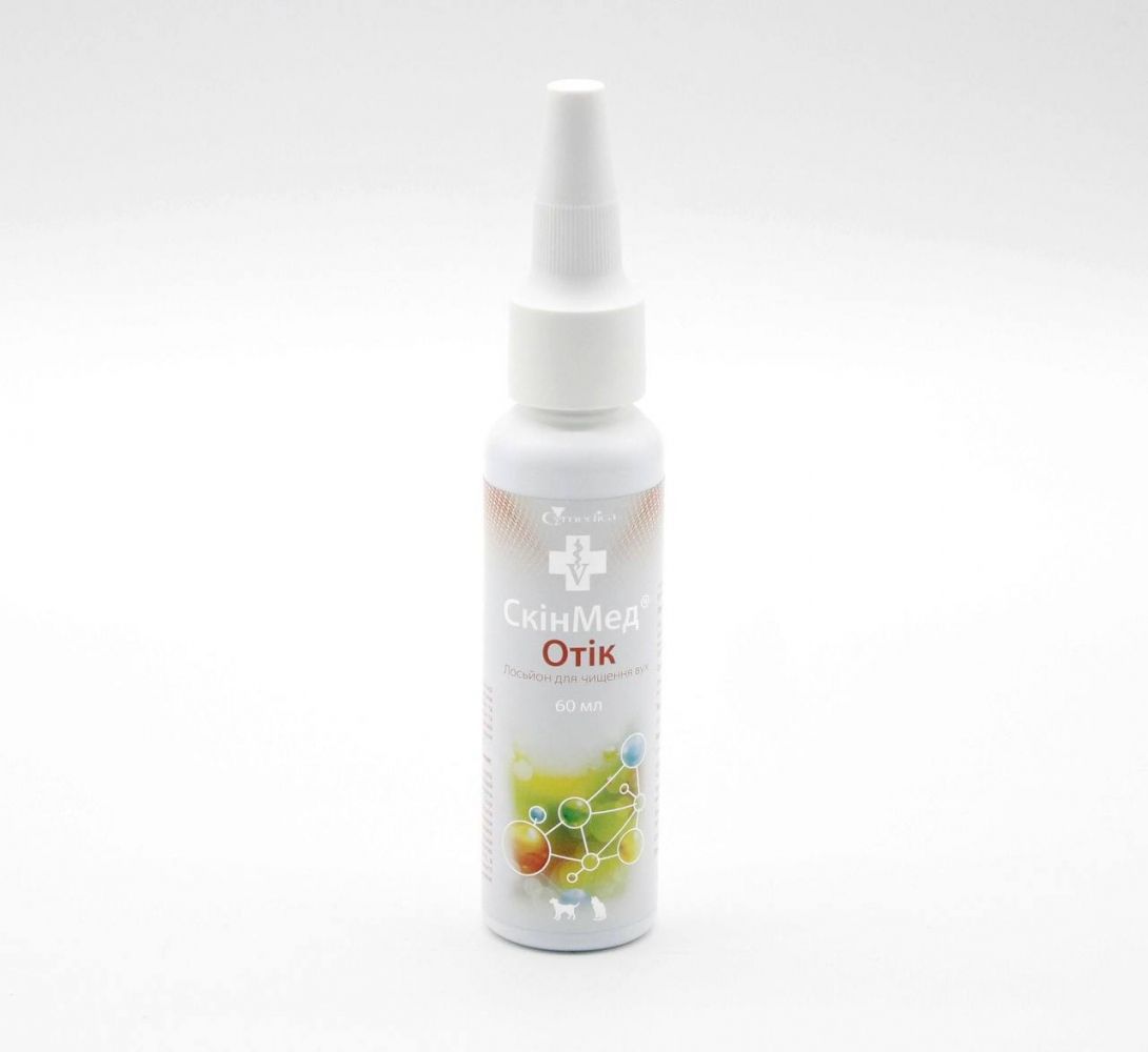 Лосьйон для вух СкинМед Отик застосовують для гігієнічної та профілактичної обробки, для профілактики отитів різної етіології, грибкових і бактеріальних інфекцій вух собак і кішок. Використовується як допоміжний засіб при комплексному лікуванні захворювань слухового проходу.СкладІзопропиловий спирт - 50 мгмл, пропіленгліколь - 100 мгг допоміжні речовини.Флакони по 60 і 130 мл з гумовим наконечниками, що дозволяють дозувати засіб по краплях.ВластивостіСкинМед Отик засіб для гігієни вух.Ізопропіловий спирт і пропіленгліколь входять до складу лосьйону є добрими розчинниками природних і патологічних органічних відкладень слухового проходу, зволожують шкіру і перешкоджають її злипанню.Після внесення лосьйону в слуховий прохід і вушна сірка, восковий наліт і бруд швидко розчиняються, відбувається видалення омертвілих клітин, тим самим відбувається ефективне скорочення кількості бактерій і грибів в зовнішньому слуховому проході і створюється оптимальне середовище для регенерації тканин уражених вушних раковин.Не володіє шкірно-резорбтивної та подразнюючою дією. Протипоказанняне Можна застосовувати для зовнішнього слухового проходу, якщо є підозра на пошкодження барабанної перетинки або є інші відкриті ушкодження слухового проходу.Дозування і спосіб застосування:Внести декілька крапель (5-10) лосьйону для вух СкинМед Отик в зовнішній слуховий прохід і акуратно масажувати вушну раковину біля основи. Після розчинення вушної сірки видаліть її ватним тампоном, змоченим лосьйоном або дозвольте тварині струснути головою, а залишки вушної сірки видалити за допомогою ватного тампона. При необхідності, залежно від стану вуха і кількості вушної сірки, процедуру можна повторювати 1-3 рази на день або 1 раз на тиждень.