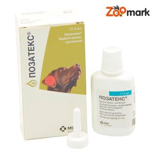 Новий препарат від відомої компанииMSDAnimalHealth Позатекс завдає потрійний удар з причин виникнення отиту у собак. До складу цілющих крапель входять:Антибиотикорбифлоксациндля боротьби з бактеріальними збудниками.Мометазон прибирає запалення і алергічний свербіж.Протигрибковий препарат з широким діапазоном дії посаконазол.Крім комплексного впливу на отит, ліки приваблює і зручною упаковкою, вивіреної дозуванням, легким застосуванням. Так, Посатекскупить могут как владельци крупних, так и мелких пород: объем флакона 8,8 и 17,5 мл.Капать лекарство необходимо всего 1 раз в сутки. На флаконе есть специальная удлиненная насадка для глубокого проникновения в ушную раковину собаки. В зависимости от веса, необходимая дозировка виглядит так:до 2 кг 2 капли в один ушной каналот 2 до 15 кг удвоенная доза в 4 каплиболее 15 кг живого веса 8 капель.Курс примененияПозатекс неделя. Пропускати процедури небажано це може знизити ефективність препарату і не вилікувати отит до кінця.Перед застосуванням крапель, собаці протирають вушну раковину з допомогою зволожених ватних дисків або паличок. Їх можна змочити, наприклад, вхлоргексидине. А після застосування ліків, вушну раковину масажують протягом нетривалого часу.При всіх позитивних якостях Посатекс,ціна на який теж не кусається є і недоліки. Так, препарат традиційно не можна давати сук під час виношування і лактації, а також цуценятам до 4 місяців. Заборонено капати ліки при порушенні цілісності барабанної перетинки або алергії на будь-який з компонентів (орбифлоксацин,мометазон,посаконазол).Також слід знати: загальний термін зберігання ліків при режимі температур від 225 C 2 роки, але після відкривання герметичного флакона всього 28 діб. Після закінчення тижневого курсу лікування, залишки ліки можна викинути.