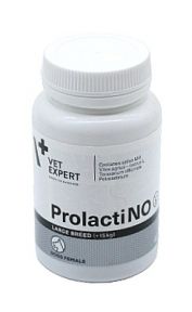 ProlactiNO Large Breed таблетки призначені для сук великих порід із симптомами несправжньої вагітності (щенності), а саме для послаблення її проявів.Хибна вагітність проявляється у незвязаних сук після папки або після вязки, що не закінчилася заплідненням. Хибна вагітність виникає, зазвичай, через 4-9 тижнів після папки.Симптоми помилкової вагітності у собак:збільшення та набухання молочних залоззміна пігментації молочних залозутворення та виділення молока (молозива) із молочних залознабухання петлі та поява виділень з неївтрата апетитуЯкщо ваша собака схильна до стану несправжньої вагітності в таких важких формах, вам варто задуматися про її стерилізацію. Це найнадійніший і найефективніший спосіб профілактики помилкової вагітності у собак.Склад:МінералиДоповнення:Вітекс (прутняк) звичайний (Vitex agnus-castus L)екстракт петрушкикульбаба лікарська (Taraxacum officinale)кінський каштан (Aesculus hippocastanum L)як джерело естінаВластивості та застосування:Завдяки своєму складу продукт має протинабрякові, діуретики та антипролактинові властивості.Екстракт Вітекс зазвичай проявляє антипролактинові властивості завдяки його активним речовинам (дитерпени), які фіксуються з дофамінових рецепторів і затримують вивільнення пролактину. Пролактин - основний гормон, що відповідає за виникнення симптомів помилкової вагітності в сук, тому зниження його рівня може спричинити зменшення стимулювання молочних залоз до вироблення молока. Додатково екстракт Вітекс зменшує прояви типової материнської поведінки, що відбувається під час помилкової вагітності.Екстракт з листя кульбаби (Taraxacum) виявляє діуретичні властивості. Завдяки високому вмісту калію та інших мінеральних складових, кульбаба сприяє виробленню сечі через стимулювання екскреції мінеральних солей та води нирками. Стимулювання виведення води дуже корисне для сук, які страждають на хибну вагітність, тому що це зменшує набряк молочних залоз і пригнічує лактацію.Екстракт петрушки має сечогінні властивості завдяки активним речовинам, що зменшують активність натрій-калієвого насоса (Na+K+ATФаза) у ниркових канальцях, що зменшує зворотне захоплення іонів натрію (Na+) та екскрецію іонів калію (K+). Це призводить до осмотичного припливу води в просвіт ниркових канальців, збільшення обєму сечі та діурезу.Есцин, отриманий з кінського каштану (Aesculus hippocastanum) має переважно протинабрякові властивості. Він призводить до збільшення чутливості кальцієвих каналів до іонів, що призводить до збільшення напруження кровоносних судин. Таке підвищення чутливості до іонів та інших речовин (наприклад, 5-ГТ або серотонін) призводить до підвищення щільності стінки венозних судин і, таким чином, зменшення рідинної фільтрації судин в інтерстиціальній тканині. Крім вищезгаданого ефекту ущільнення стінок дрібних кровоносних судин, есцин зменшує активацію ендотеліальних судинних клітин, спричинену нестачею кисню. Ця активація запускає ланцюг запальних реакцій, одним із симптомів яких є набряк.Пригнічення активації ендотеліальних клітин фактично є формою протизапальної дії та, таким чином, протинабрякової дії (Sirtori, 2001). Останнє має вирішальне значення для сук із несправжньою вагітністю, оскільки дозволяє зменшити набухання молочної залози та обєм лактації.Дозування:1 таблетка на кожні 15 кг ваги твариниВикористовувати не б