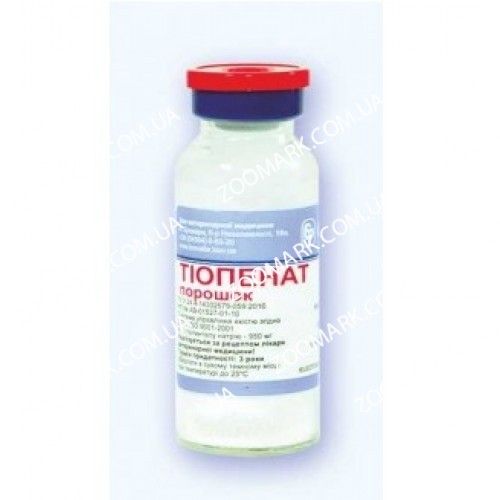 Опис:Дрібнокристалічний гігроскопічний порошок світло-жовтого кольору з лгким специфічним запахом.Склад:1 г препарату містить (мг):натрію тіопентал - 950,0,натрію карбонат безводний - 50,0.Фармакологічні свойстваНатрия тіопентал , похідне барбітурової кислоти з групи тиобарбитуратов. Механізм його дії полягає у швидкому гальмуванні ГАБК-рецепторів центральної нервової системи, що викликає анестезію, гіпнотичний, снодійний ефект в першу хвилину після введення.Дозування:Усім видам тварин препарат застосовують тільки внутрішньовенно.Розчин препарату готують асептично, в день застосування, путм розчинення порошку стерильною дистильованою водою або розчином натрію хлориду 0,9.Для дрібних тварин готують 2,5, для великих - 5 (рідше 10) розчини (що відповідно становить 25, 50 і 100 мг препарату на 1 мл розчинника).Для внутрішньовенного наркозу тиопенат застосовують в дозах 7-15 мг на 1 кг маси тіла. Третину вказаної дози вводять швидко (за 10-15 секунд), залишок препарату - повільно (протягом 40,50 секунд) до появи бажаного ефекту.Перед застосуванням даного анестетика для собак раціонально проводити премедикацію, що запобігає можливим виникнення реакцій збудження, сприяє скороченню терміну виходу з наркза і зменшення дози препарату.При необхідності більш тривалого наркозу застосовують інші препарати, але іноді можливе ще одне повторне введення тиопената за умови, що загальна доза натрію тіопенталу не буде перевищувати 35 мг на 1 кг маси тіла.Протипоказання:Препарат не застосовувати для анестезії з вираженою патологією печінки, недостатньою функцією нирок, при лихоманці або сильному виснаженні.Не застосовувати вагітним та лактуючим тваринам.Застереження:Виготовлені розчини варто використовувати протягом перших діб.Не застосовувати розчини з вмістом діючої речовини не менше 1,5. При введенні не допускати попадання розчину в підшкірну клітковину, оскільки це може викликати некроз.З тіопенталом натрію не сумісні аміназин, амікацину сульфат, атропіну сульфат, гідроморфін, димедрол, дименгідринат, дитилін, інсулін, морфіну сульфат, розчин Рінгера, антибіотики з групи пеніциліну і тетрацикліну.Побічну дію:У собак можливе виникнення аритмії (часто при використанні тіопенталу з катехоламінами), що носить тимчасовий характер і зникає при проведенні оксигенації.Лідокаїн пригнічує прояв цього ефекту.У котів можливий розвиток апное, помірної артеріальної гіпотензії.При застосуванні тиопената для монотерапії у коней можливі прояви надмірного збудження, вираженої атаксії.Іноді виникає гіперглікемія, транзиторна лейкопенія, апное, тахікардія, респіраторний ацидоз.Лікування симптоматичне. Парасимпатичние косвенние еффекти (гиперсаливация, брадикардия) устраняются путм применения антихолинергических препаратов (атропина сульфат и т.п.)Форма випуска:Препарат фасуют в стеклянние или полипропиленовие флакони по 0,5, 1,0, 2,0 или 5,0 граммов, которие закупорени резиновой пробкой под алюминиевую обкатку.Реализуется по доверенности от предприятий ветеринарной медицини или по рецепту врача ветеринарной медицини.Хранение:Хранят по списку Б. У стандартній упаковці в місці, захищеному від світла, при температурі до 25,С. Термін придатності:3 роки.Як купити Тиопенат 1г, БровафармаОформить замовлення через корзинуОформить замовлення за контактними телефон