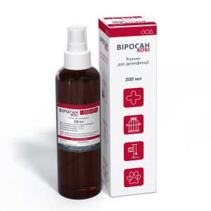 СКЛАД200 мл засобу містить діючі речовини:бензалконію хлорид 0,25 гглутаровий альдегід 0,11 р.Допоміжні речовини: ізопропіловий спирт, неіоногенні поверхнево-активні речовини, вода.ФАРМАКОЛОГІЧНІ ВЛАСТИВОСТІВИРОСАН ХОБІ комплексне дезінфікуючий засіб, дейстующее бактерицидно (Staphylococcus aureus, Streptococcus faecalis, Pseudomonas aeruginosa, E. coli, Klebsiella pneumoniae, Mycobacterium bovis, Proteus mirabilis, Listeria monocytogenes, Mycoplasma spp.), фунгіцидно (Candida spp., Aspergillus spp., Fusarium spp., Penicillium spp.), вирулицидно (Newcastle disease virus, Reovirus, Rotavirus, Coronavirus, Paramyxovirus, Poxvirus, Orthomyxovirus, Pestivirus).ВИРОСАН ХОБІ ефективний засіб для дезінфекції при інфекційних захворюваннях, таких як трихофітія, мікроспорія, чума мясоїдних, парво - і коронавирусние інфекції собак, панлейкопенія, каліцівіроз кішок, сказу мясоїдних та ін, збудники яких чутливі до дії бензалконію хлориду, глутаравого альдегіду та їх комбінації.ЗАСТОСУВАННЯВИРОСАН ХОБІ застосовують як дезинфікуючий і дезодоруючий засіб у місцях утримання домашніх тварин, у тому числі у ветеринарних клініках (обробка приміщень, оснащення), розплідниках, квартирах і приміщеннях приватного сектору також для знезараження поїлок, годівниць, туалетів, клітин, іграшок, предметів догляду за тваринами, обладнання та інвентарю.Годівниці, поїлки та іграшки, через 15-30 хвилин після обробки, слід промити водою з інших поверхонь змивати засіб не потрібно.Дезінфекцію проводять методом зрошення після ретельної механічної та санітарної очистки поверхонь обєктів знезараження. Обробку проводять рівномірним розпиленням кошти до повного зволоження поверхні.З метою запобігання виникнення інфекційного захворювання та поширення збудника, проводять профілактичну обробку засобом одноразово або періодично, 1-2 рази в тиждень. При наявності джерела інфекційного захворювання проводять поточну або заключну обробку. Засіб ефективно знезаражує збудників захворювань протягом 30-60 хвилин.Дозволяється проводити обробку в присутності тварин, уникаючи попадання засобу на шкіру, вовну, слизові оболонки і дихальні шляхи тварин.ПРОТИПОКАЗАННЯНе обробляти хірургічні інструментиЗАСТЕРЕЖЕННЯДо роботи із засобом не допускають осіб молодше 18 років.Уникати попадання засобу у дихальні шляхи, шкіру і слизові оболонки осіб, які проводять дезінфекцію.При появі ознак подразнення органів дихання необхідно припинити роботу із засобом, потерпілого негайно вивести на свіже повітря або в інше приміщення. Прополоскати Рот і носоглотку водою, звернутися до лікаря.При випадковому попаданні засобу в очі необхідно негайно промити їх проточною водою протягом 10-15 хв та звернутися до лікаря.При случайном попадании препарата на кожу, необходимо тщательно промить пораженний участок проточной водой. При случайном попадании средства в желудок необходимо дать випить пострадавшему несколько стаканов води с 10-20 измельченними таблетками активированного угля и обратиться к врачу. Желудок не промиватьВсе електрические прибори при обработке должни бить отключени.Запрещается курить, пить, принимать пищу при виполнении работ по дезинфекции. После окончания работи лицо и руки следует вимить водой с милом.ФОРМА ВЫПУСКАПластиковие флакони со спреером по 200 мл та 500 мл.ХРАНЕНИЕУ темному, недоступному для дітей місці при температурі від 5С до 35С. Термін придатності 3 роки.