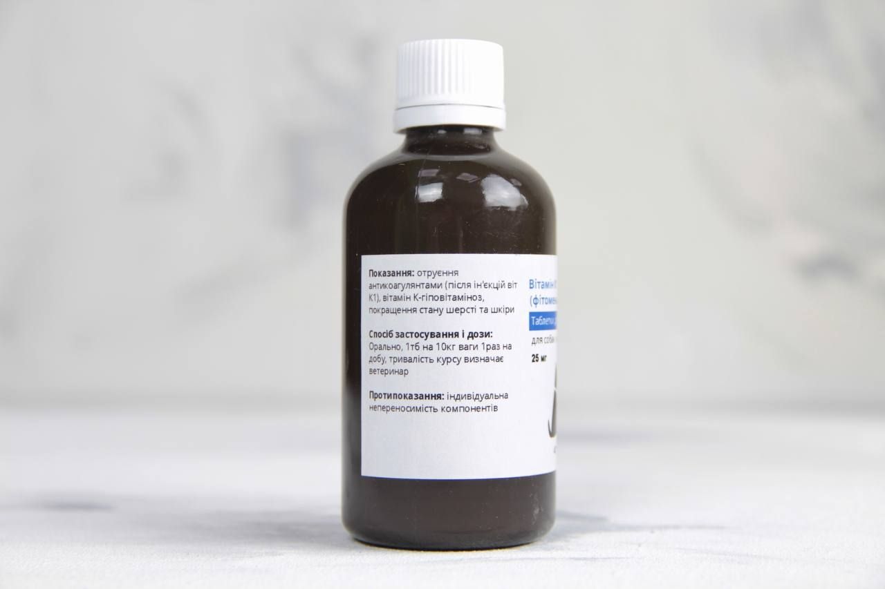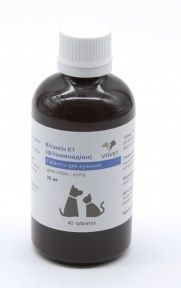 Опис вітамін К1 для собак і кішок VovetПоказання: отруєння антикоагулянтами (після інєкцій К1), вітамін до-гіповітаміноз, фітом поліпшення стану шерсті і шкіриСпосіб застосування та дози: Орально, 1ТБ на 10кг ваги 1 раз на добу, тривалість курсу визначає ветеринарПротипоказання: індивідуальна непереносимість компонентівСклад 1 тб: вітамін К1 ( фітоменадіон) - 25 мг, формотворчі компонентиУмови зберігання: сухе затемнення недоступне для дітей і тварин, міститься при температурі 0-30 CВиробник: PRC, Xinzheng GtyТермін придатності: 3 роки