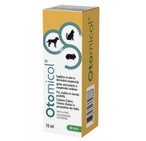 Otomicol це ветеринарний препарат, спеціально розроблений для лікування зовнішнього отиту та інфекцій шкіри у собак та котів.Завдяки поєднанню трьох активних компонентів ці краплі забезпечують комплексний підхід до боротьби з бактеріальними та грибковими інфекціями, а також зменшують запалення та дискомфорт.Склад:МіконазолунітратПоліміксин BсульфатПреднізолонуацетатПоказання для застосування:Otomicol призначений для лікування:Зовнішній отит, спричинений чутливими до компонентів препарату патогенами, такими якMalasseziaтаPseudomonas spp..Первинних та вторинних інфекцій шкіри та її придатків (волосся, пазурів, потових залоз) у собак та котів.Препарат застосовуєтьсямісцево шляхом закапування у зовнішній слуховий прохід або нанесення на уражені ділянки шкіри.Дозування та тривалість лікування визначає ветеринарний лікар залежно від ступеня та характеру інфекції.Протипоказання:Не застосовувати тваринам з перфорованою барабанною перетинкою, оскільки поліміксин B може мати ототоксичний ефект.Не використовувати при підвищеній чутливості до будь - якого компонента препарату.Форма випуску:Флакон обємом 15 мл.Застереження:Otomicol є рецептурним препаратом, тому його застосування має відбуватися під наглядом ветеринарного лікаря.Otomicol надійний вибір для ефективного лікування вушних та шкірних інфекцій у ваших улюбленців, забезпечуючи швидке полегшення та відновлення здоровя.
