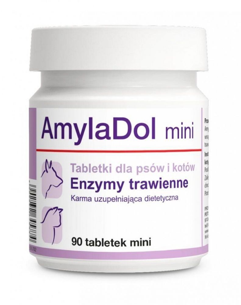 АмилаДол мини (Dolfos) для собак и кошек 90 таб Указания Амиладол ето кормовая добавка для собак и кошек, содержит натуральние ферменти пищеварения, которие обеспечивают переваривание жиров, углеводов и протеинов. Рекомендуется для животних больних и склонних к заболеванию панкреатитом. Показан при разних типах нарушений пищеварения, воспалении поджелудочной желези и как монотерапия при синдроме мальдигестии (тошнота, отрижка, дискомфорт в абдоминальной области, метеоризми , диарея и тому подобное). Дозировка: котам и собаки мелких пород 1 таб. в день собаки средних пород 2 табл. в день собаки крупних пород 3 табл. в день Кошки и собаки мелких пород 1-3 мини табл. в день Препарат следует задаваться утром перед кормлением. Рекомендуемая продолжительность использования: от 3 до 12 недель, однако в случае хронической недостаточности поджелудочной желези препарат назначают в течение всей жизни животних. Перед применением рекомендуется проконсультироваться с ветеринаром. Упаковка: 30 табл., 90 табл.90 мини табл. Масса нетто: 30 г, 90 г, 30 г. Состав: в 1 табл. 1kФерменти (ензими): (1 Phd. Eur.u. трипсин инактивирующая единица Европейской Фармакопеи) Амилаза 13 400 Phd. Eur.u. Ліпаза 9 200 Phd. Eur.u. Протеаза 960 Phd. Eur.u. міні: (1 Phd. Eur.u. трипсин инактивирующая одиниця Європейської Фармакопеї) Амілаза 4470 Phd. Eur.u. Ліпаза 3070 Phd. Eur.u. Протеаза 320 Phd. Eur.u. Аналітичні показники сирий протеїн 0,5, сира клітковина 0,2, сира зола 35,4, масла і сирий жир 0, кальцій 0, фосфор 0, натрій 0. Склад мальтодекстрин, стеарат магнію, ензими.