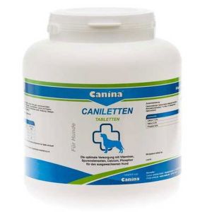 Опис Canina CanilettenДуже важливою складовою для організму собаки є кальцій. Саме завдяки йому у тварини міцні кістки і хороше здоровя. Особливо важливу роль відіграє кальцій для собак у той момент, коли вихованець чекає потомство, або перебуває у періоді лактації. Улюбленцеві необхідно регулярно поповнювати резерви організму корисними речовинами, в тому числі і кальцієм, і дуже добре зарекомендували себе таблетки виробника Canina.Даний виробник зарекомендував себе тільки з найкращої сторони, адже у виробництві своєї продукції використовує виключно натуральна сировина, що сприятливо впливає на імунітет і загальний стан вихованця.Caniletten - чудовий препарат, який в достатній кількості містить всі необхідні елементи для дорослого собаки. В пігулках міститься 18 кальцію, 9 фосфору і 3,5 натрію. До складу також включені залізо, мідь, марганець, йод, цинк, селен, кобальт, різні вітаміни, дріжджі і морські водорості, які також дуже корисні. Інструкція по застосуваннюУказанние таблетки Канина в первую очередь необходими беременним собакам, ведь благотворно влияют на развитие плодов и не дают организму самки истощатся. Также следует приобрести препарат тогда, когда самка кормит щенков, ведь с молоком щенки получат полезние елементи.Как правило, для беременной либолактирующейсамки положено давать 1 таблетку на 10 кг масси тела каждий день на протяжении всего ответственного периода жизни. Что касается животних, которие питаются натуральной пищей, то для них рекомендована такая же дозировка каждий день постоянно.Препарат Канилеттен купити можна в розфасовці по 150, 500 і 1000 таблеток. У кожній коробці препарату знаходиться інструкція, що дозволяє детально вивчити містить вітаміни, мікро і макроелементи, їх кількість, а також іншу важливу інформацію.