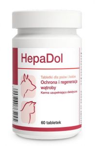 ГепаДол Dolfos для собак і кішок, 60 таблеток Вказівки Комбінований гепатопротектор з жовчогінну і спазмолітичну дію для собак і кішок. Нормалізує і відновлює функцію печінки при патологічних станах, підвищує її стійкість до впливу патологічних факторів. Застосовують для профілактики і лікування дискінезії жовчовивідних шляхів, хронічних гепатитів, цирозу печінки , жирової дистрофії печінки, токсичних уражень печінки. Орнітин регулює цикл сечовини і відіграє роль у трансформації аміаку, який формується в процесі розщеплення амінокислот, сечовини, знижуючи токсичну дію на організм. Орнітин особливо важливий для котів, які використовують амінокислоти в процесах енергопродукції. Прийом амінокислот добре комбінується з іншими лікарськими препаратами. Дозування: кішки 1 табл. у день собаки до 15 кг 1табл. у день собаки 15-30 кг - 2 табл. у день собаки понад 30 кг 3 табл. в день. Упаковка: 60 табл. Вага нетто: 60 р. 1 таблетка містить : Бетаїн 50 мг Холіну хлорид 1 мг Вітамін В1 50 мкг Вітамін В2 125 мкг Вітамін В6-50 мкг Вітамін В12 1 мг Ніацин 700 мкг Пантотенова кислота 500 мкг Фолієва кислота 22 мкг Біотин 20 мкг Таурин 100 мг L-Аргінін 100 мг 2b екстракт молока чортополоху 25 мг 2b екстракт соєвих бобів 75 мг Орнитин (у формі L-орнітину) 150 мг Фосфоліпіди 70 мг Силімарин 20 мг Аналітичні показники: сирий протеїн 26,4, сира клітковина 2,8, масла і сирий жир 0,8, сира зола 7,8, натрій 0,7, кальцій 1,1, фосфор 1,5, магній 0,мідь 0 . Склад: сухі пивні дріжджі, мальтодекстрин, стеарат магнію, вітаміни, провітаміни, вітаміни, мінерали.