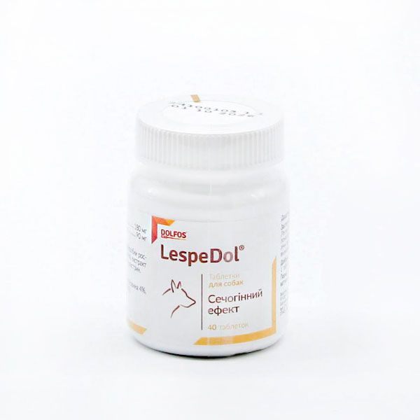 ЛеспеДол для собак, 40 таблеток Вказівки Містить натуральні сечогінні засоби, які сприяють виведенню токсинів і продуктів обміну речовин з організму. Компоненти підтримують правильне функціонування сечовивідних шляхів , мають протизапальну дію. Леспедол знижує концентрацію азоту сечовини без впливу на електролітний баланс ,тим самим відбувається очищення від токсинів і побічних продуктів обміну речовин. Рекомендується при комплексному лікуванні захворювань сечовивідної системи,нирок . Для посилення діурезу з метою детоксикації організму. Дозування: 1 табл. на 10 кг маси тіла. 1 міні табл. на 3 кг маси тіла. Упаковка: 40 табл. Маса нетто: 40 г 60 міні табл. Маса нетто: 20 г 1 таблетка містить: Lespedeza екстракт 180 (2Б) 180 мг Ортосифону нирковий чай (2Б) 90 мг Міні: Lespedeza екстракт 180 (2Б) 60 мг Ортосифону нирковий чай (2Б) 30 мг Аналітичні показники: Сирий протеїн 18,6, сира клітковина-4,2, сира зола 3,7, сирої олії та жири 0, кальцій 0, фосфор 0,6, натрій 0,7, калій 0. Допоміжні речовини: сухі пивні дріжджі, стеарат магнію.