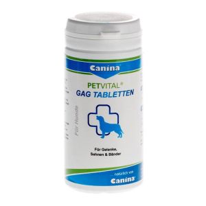Вітаміни Canina Petvital Gag повертають собаці хорошу рухливість і здорову фізичну форму. Вони особливо актуальні, коли у вихованця слабкі звязки, хворі суглоби або порушений метаболізм сполучної тканини. СкладВдале поєднання компонентів покриває потреби в найважливіших для здоровя суглобів речовинах. Наприклад, в екстракті молюсків містить глюкозамін (точніше, його покращений аналог глікозаміноглікани), вкрай необхідний для відновлення звязок і хрящів, нормалізації водного балансу в оболонках. Желатин заповнює дефіцит колагену, який підвищує еластичність тканин і зупиняє дегенеративні процеси в суглобових елементах. За рахунок подрібнених морських водоростей, вітамінних добавок підтримується баланс сірки в організмі, вільні радикали нейтралізуються, виводяться шлаки і токсини. Переваги препарату Petvital GagВітаміни Петвигал гаг купити варто, адже вони вирішують відразу кілька завдань: відновлюють мобільність і правильну роботу опорно-рухового апарату собаки стабілізують і зміцнюють суглобові хрящі, попереджають зношування хрящової тканини надають протизапальну і болезаспокійливу дію, підвищують загальний імунітет збільшують витривалість вихованця при інтенсивних тренуваннях, змаганнях, інших фізичних навантаженнях. Особливості застосуванняЯк повідомляє інструкція до Петвитал Гаг, таблетки треба давати вихованцеві протягом 3 місяців. Це доцільно як з метою профілактики збоїв в роботі опорно-рухового апарату, так і при виявленні патологій, серед яких: артроз спондильоз дисплазія суглобів остеохондроз хронічний або гострий артрит.Інструкція по застосуваннюЯкщо собака важить в межах 15 кг, на курс вистачить однієї упаковки мінерального комплексу. Щодня по 1 таблетці через 3 місяці піде якраз 90 таблеток. Для особин з вагою від 15 до 30 кг добову дозу збільшують удвічі, від 30 до 50 кг втричі.
