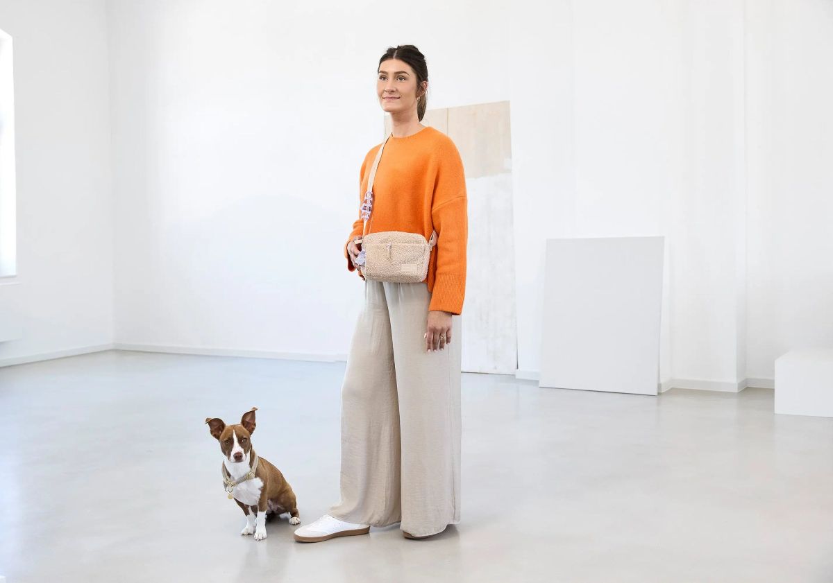 PALOPA Noka — стильна та функціональна сумочка, створена спеціально для зручних прогулянок із собакою. Усе необхідне — від ласощів до ключів чи телефону — завжди під рукою, а ваші руки залишаються вільними.