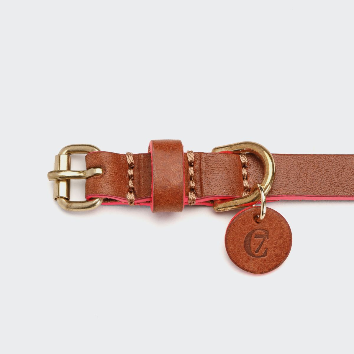 Фурнітура виготовлена з високоякісної латуні, а на нашийнику розміщено фірмовий шкіряний ярличок з тисненням C7. Регулярний догляд допоможе зберегти м’якість та еластичність шкіри на довгі роки.