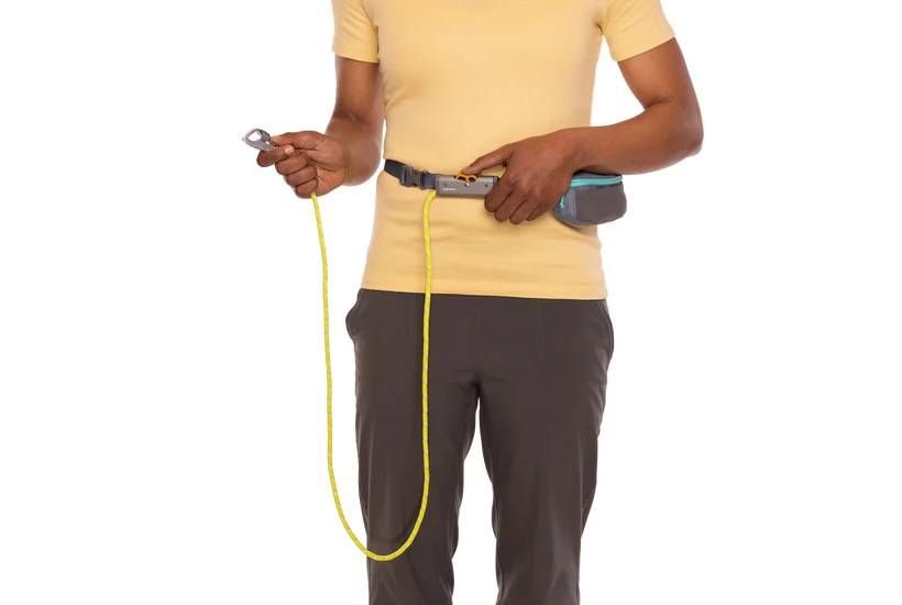 Регульований повідець дійсно універсальний: як звичайний повідець на щодень, для використання без рук, або як ремінь для прикріплення навколо дерева або стовпа. А завдяки мотузці довжиною 3,65 м, ви можете плавно перемикатися з довгої стропи на будь-яку довжину за допомогою ергономічного регулятора мотузки HitchLock™. Він призначений для ручного регулювання і діє як гальмівна система, коли мотузка знаходиться під напругою. Міцна сумка для зберігання має неперевершену місткість, підкреслюючи користь як комбінацію з'єднання та повідця.