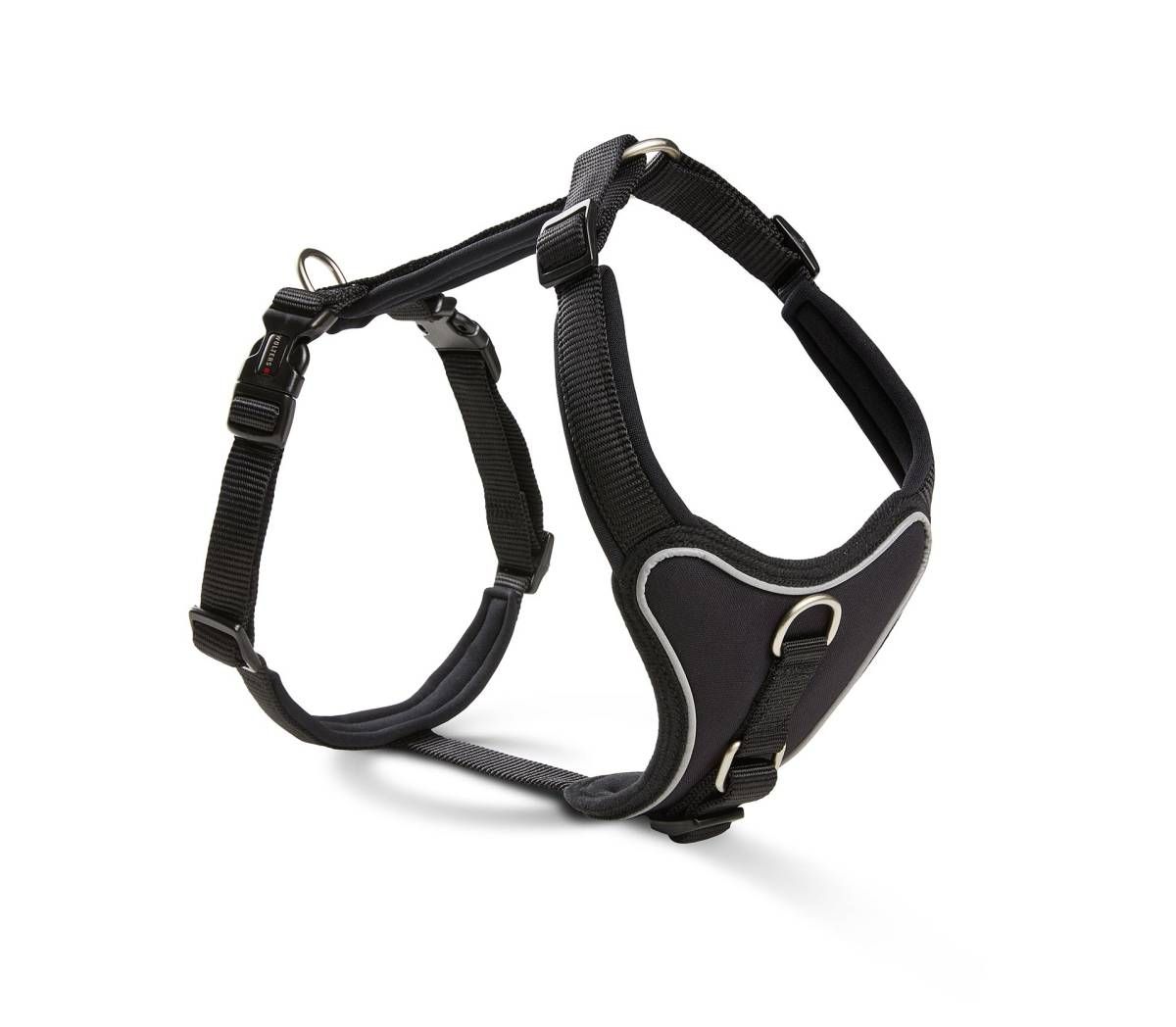 Міцне кільце повідця міцно пришито до шлеї і витримує навіть сильну тягу. Особливістю є неопренова м'яка нагрудна пластина, яка забезпечує чудовий розподіл ваги, коли собака тягне повідець.