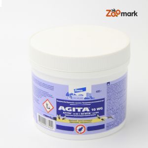 Агіт 10 WG високоефективне інсектицидний засіб від мух.Призначений для використання в приміщеннях, у яких міститься домашню худобу. Агіт 10 WG це водорозчинні гранули бежевого кольору, без запаху. Основна діюча речовина тіаметоксам (група никотиноидов) + Z-9-трикозен (статевий феромон мух для залучення комах). Додаткові компоненти лактоза і цукор. Інсектицид має контактну і кишковим дією. Препарат активний відносно мух, бліх, тарганів, які перебувають у тваринницьких приміщеннях.Застосування і витрата. Агіт 10 WG застосовується у вигляді розчину, який наносять на поверхні кистю (мазки, розміром 10х30 см) або методом розпилення. Оброблена поверхня повинна становити 30 від площі приміщення. Обробці підлягають стіни, стеля, опорні балки, віконні та дверні рами і т. п.Можна використовувати, оброблені препаратом, шматки картону, які можна розвісити в місцях найбільшого скупчення мух. У свинарниках слід обприскувати поверхня стін вище 1,5 м, а на фермах для великої рогатої худоби вище 2 м. Витрата: Для нанесення мазків на поверхні 400 г препарату розмішують до 320 мл води. Цієї кількості достатньо, щоб обробити приміщення площею 160 кв. мДля розпилення 400 г3,2 літра води. Достатньо для обробки приміщення площею 90 м кв. Ефективність і переваги: тіаметоксам ефективний відносно комах, резистентних до фосфорорганічних інсектицидів, піретроїдів та карбаматам, володіє тривалим періодом дії 4-6 тижнів. Заходи безпеки та безпеки За ступенем впливу на організм теплокровних, Агіт 10 WG відноситься до малонебезпечних речовин.Інсектицид токсичний для бджіл і риб. У приміщенні, під час обробки, не повинні знаходиться тварини. Забороняється обробляти годівниці і напувалки, а також поверхні, з якими стикатимуться продукти харчування і корми. Не заводити тварин у приміщення, поки не висохнуть оброблені поверхні.