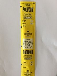 Антимікробна поліамідна хірургічна нитка Полікон для ветеринарії Поліамідна хірургічна нитка кручена або плетена, білого кольору. Призначена для використання як шовний хірургічний матеріал при зшиванні мяких тканин тварин. Шовний матеріал Полікон забезпечує біологічну герметичність хірургічного шва, має високу лінійну та вузличну міцність. Застосування нитки Полікон знижує частоту післяопераційних гнійних ускладнень. Біологічна чистота хірургічної нитки у відкритій упаковці гарантується. Полікон нитка має високу міцність, надійність, легко вяжеться хірургічним вузлом. Нитки Полікона викликають помірну тканинну реакцію, в організмі поступово деградують - протягом декількох років втрачають міцність і розсмоктуються (належать до шовних матеріалів, що умовно розсмоктуються). Період напіврозсмоктування становить близько 180 діб, повна абсорбція відбувається протягом 2-3 років. Найбільш сприятливі сфери застосування ниток - хірургічна офтальмологія, зшивання судин, бронхів, апоневрозу, сухожиль. Поліамідна хірургічна нитка Полікон упакована в стерильному, герметичному пакеті по 10 м.