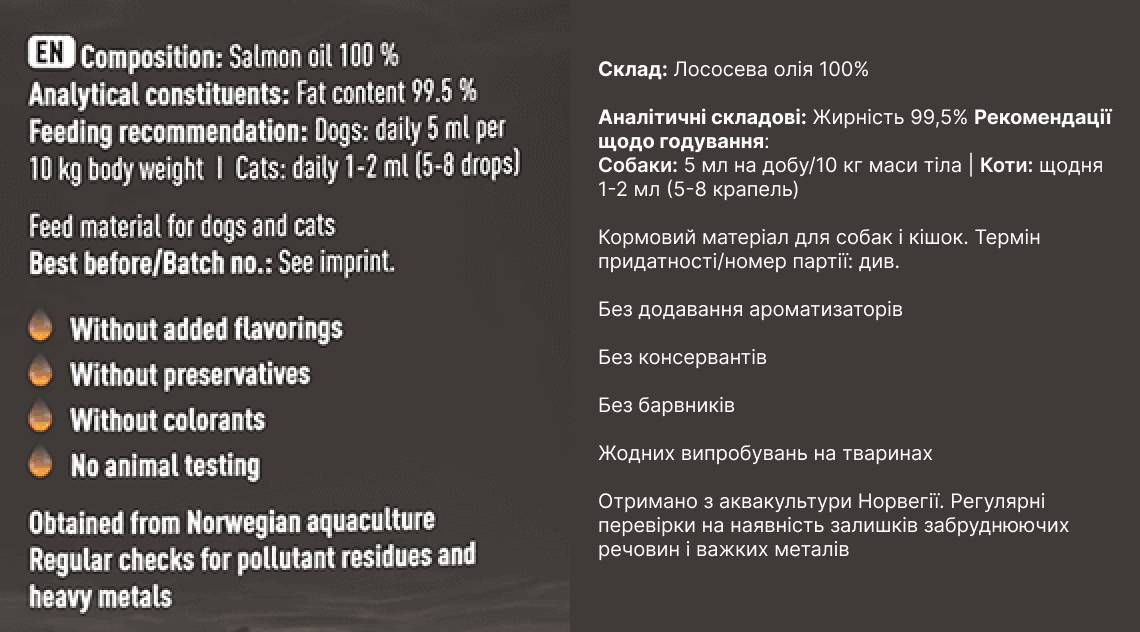 - 100% чисте масло лосося;