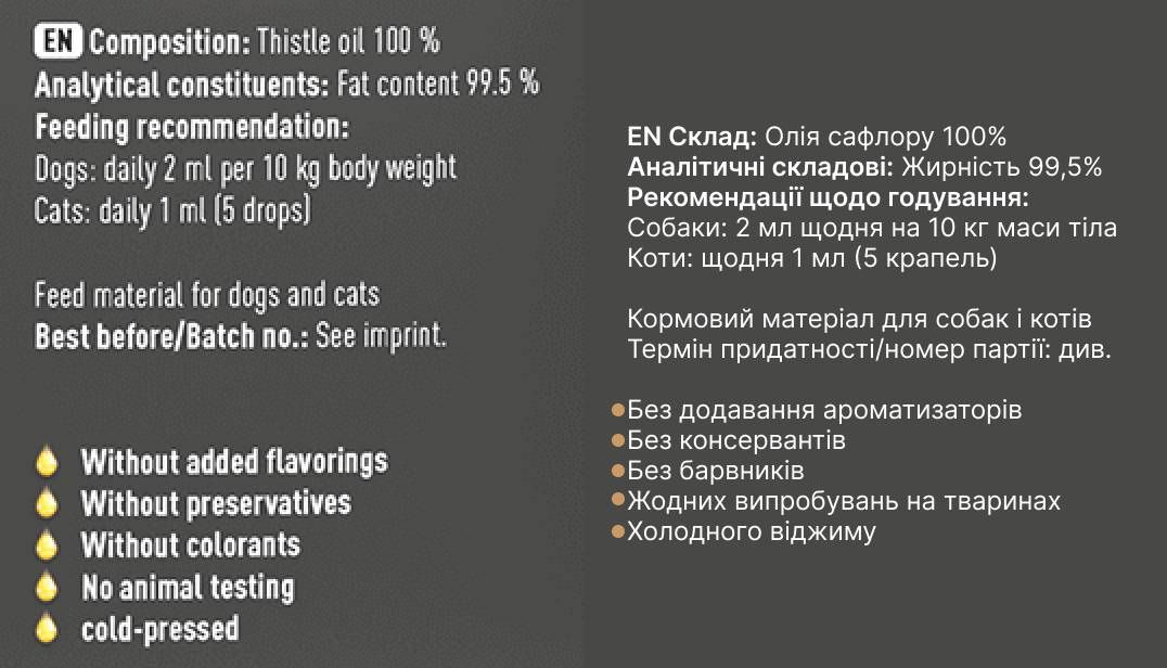Замовте сафлорову олію Pets Nature вже зараз і подаруйте своїм улюбленцям здоров'я та смак!
