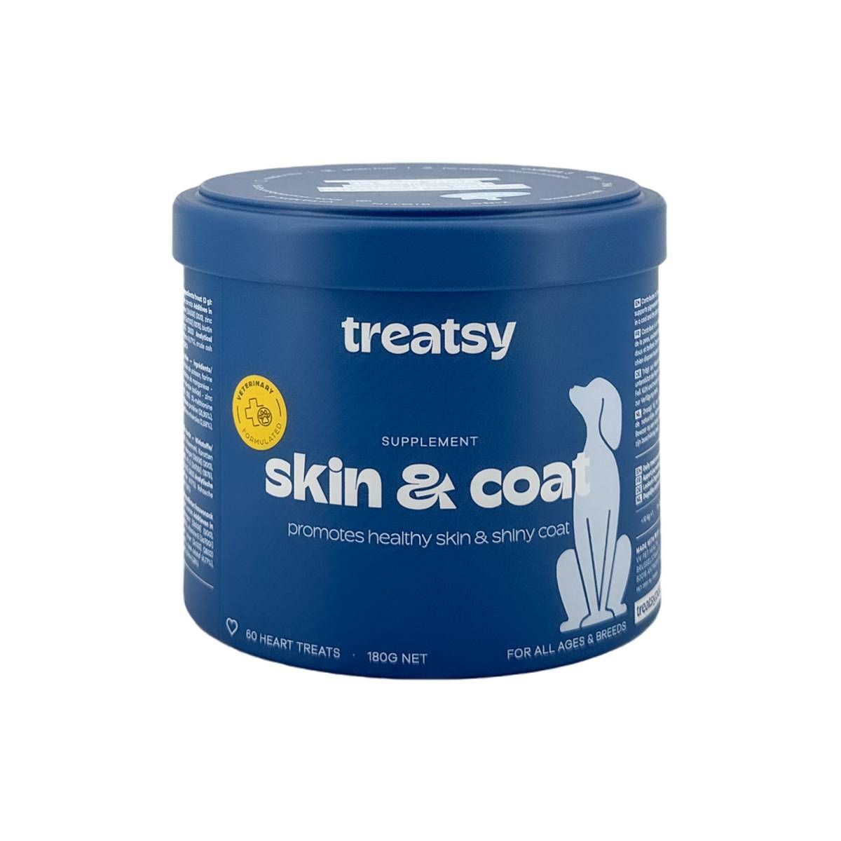 Treatsy Skin & Coat – це унікальна формула, розроблена для покращення стану шкіри та шерсті собак. Вона містить високу концентрацію науково доведених активних інгредієнтів, які допомагають підтримувати здоров'я шкіри, зменшити свербіж, лущення та сприяти загоєнню ран.
