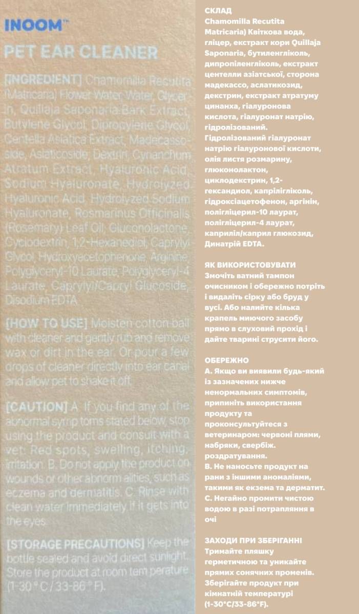 Веганська рідина для очищення вушок собак Inoom Pet Ear Cleaner 100 мл