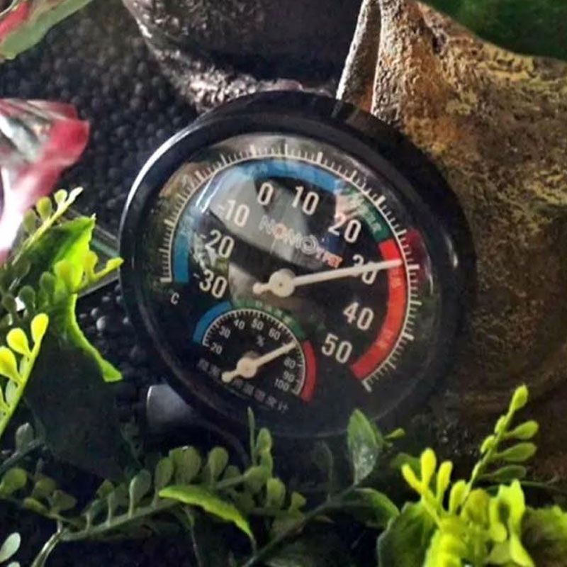 Механічний гігрометр-термометр дозволяє стежити за температурою і вологістю в навколишньому середовищі.для точного контролю температури і вологості в тераріумі, паллюдаріумі, квартирідіапазон температур від -30 до + 50Сдіапазон вологості від 0 до 100легка установка на наклейкуУвага: не встановлюйте в безпосередній близькості від джерела тепла і зволоження