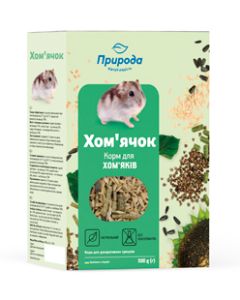 Рецептура корми Хомячок розроблена на основі рекомендацій провідних фахівців в розведенні дрібних гризунів.Корм містить інгредієнти, необхідні для росту і розвитку молодих тварин і для гарній кондиції дорослих особин. Крім зерна корм містить смакові добавки: гречку, горох, комбікорм. Не забудьте побалувати улюбленця ласощами ТМ Природа.Застосування:Годувати 1-2 рази на день невеликими порціями, корм кожен раз насипати в чисту, суху годівницю. Слідкуйте за тим, щоб в поїлці завжди була свіжа вода.Склад:овес, пшениця, травяне борошно в гранулах 6 мм, гречка, ячмінь, горох, насіння соняшнику, комбікорм, травяне борошно в гранулах 4 мм