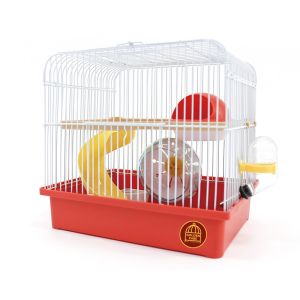 Клітка оснащена за останнім словом техніки: будиночок у формі космічного корабля (летаючої тарілки) з балконом, американська гірка та колесо на підшипнику, поїлка, годівничка, ручка для перенесення.Ця клітка чудово підходить для різних видів хомяків, як карликових, так і сирійських, завдяки маленькій відстані між прутами. Практичні та великі двері лицьова та на даху підкреслюють зручність та оригінальність дизайну цієї моделі. Клітка надійна та практична, виготовлена з високоякісних матеріалів.