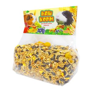 Наш Корм для морських свинок - це збагачена вітамінами зерносмесь злакових культур у поєднанні з насіннєвими добавками, яка забезпечить повноцінне харчування морських свинок і, як результат, їх відмінне здоровя.Вага 750г