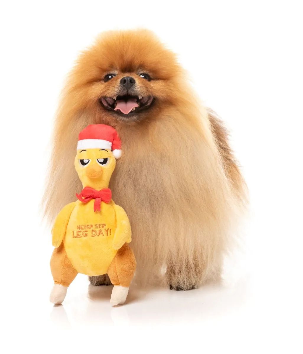 Знайомтеся з найкачковитішим птахом різдвяної вечері — Never Skip Leg Day Chook. З поглядом, сповненим рішучості, вражаючими «ніжками» та пищиком, що додає справжньої сили у гру, ця курочка прийшла не лише похизуватися — вона тут, щоб розважати!
