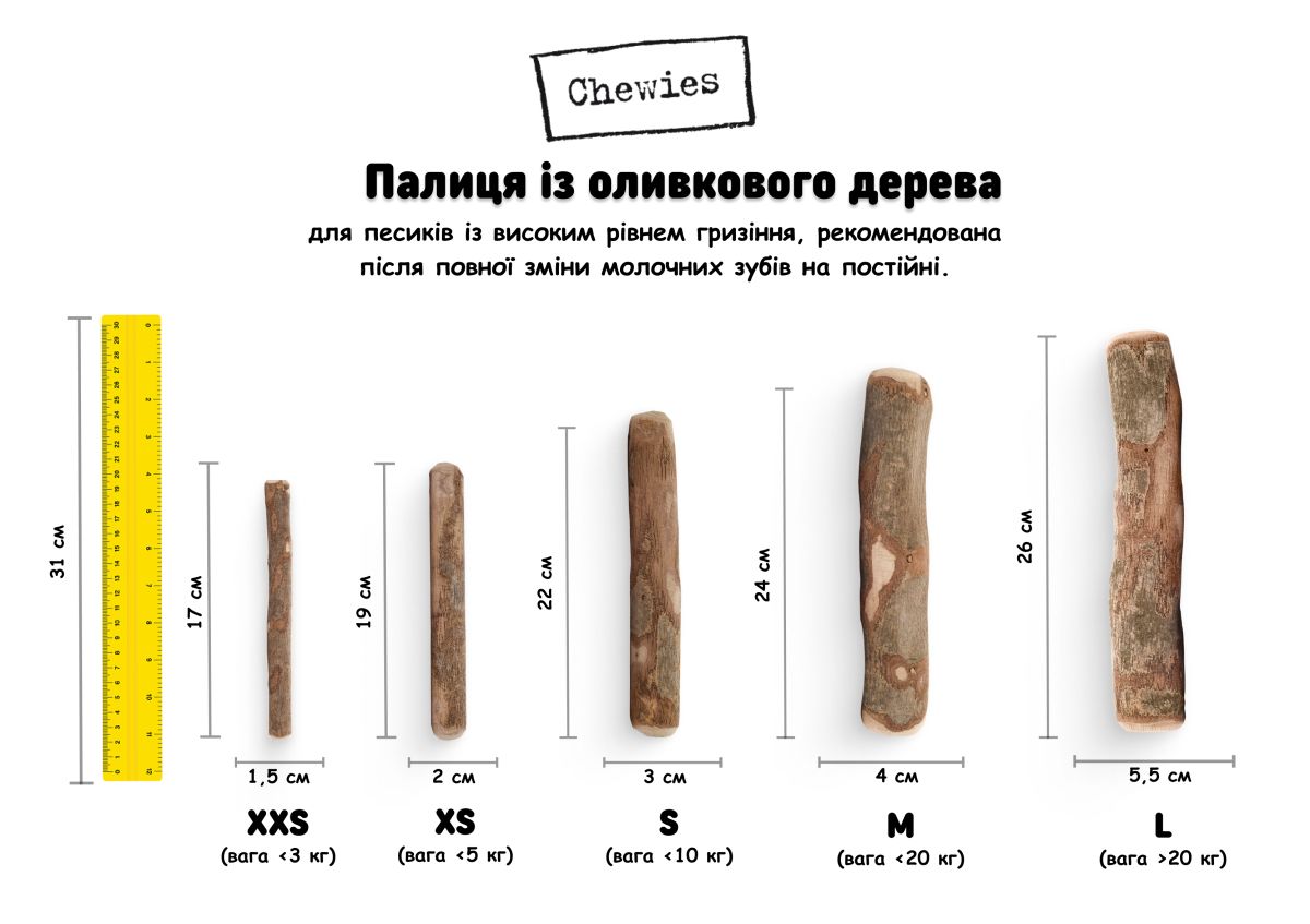 Оливкова деревина для жування Chewies – це безпечна, натуральна й надзвичайно міцна альтернатива звичайним паличкам, яку собаки полюблять з першого укусу. Виготовлена з італійських оливкових дерев, ця деревина належить до найтвердіших порід у світі, тому ідеально підходить для собак із сильним прикусом.