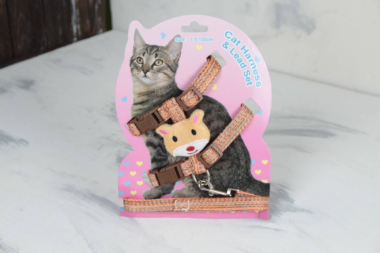 Комплект Хомячок, шлея з повідцем для кішки помаранчева Обєм грудей 29-43 см