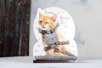 Комплект Котик, шлея з повідцем для кішки меланж Обєм грудей 24-38 см