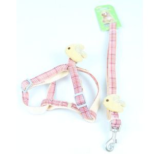 Шлея з повідцем рибка 1,5 х120 см клітинка Трояндовий