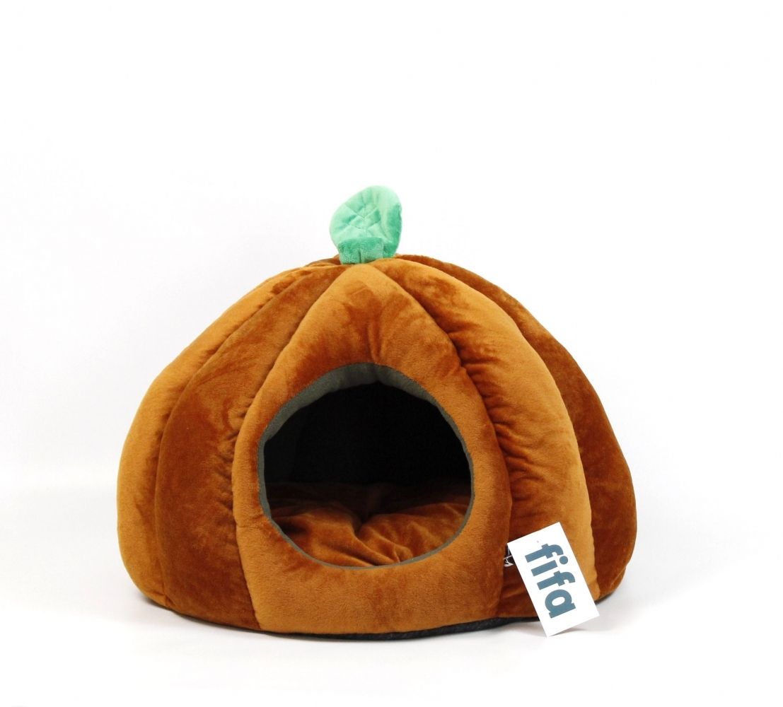 Будиночок Гарбуз виготовлений з плюшевої тканини, мякий, теплий, комфортний. Подушка знімна.